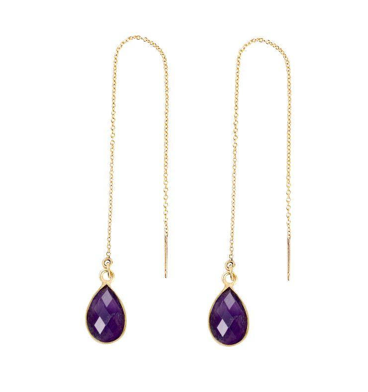 Bezeled amethyst earrings with 14k gold-filled earring chain.