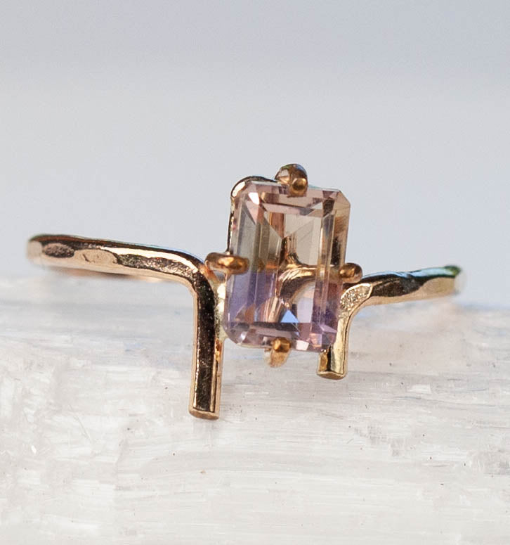 Most rings are one of a kind pieces and come as is. If you find that this ring is not for you, you can return the ring to us at a market (insert link of upcoming markets) or mail it in to our studio for store credit in the full amount of the ring minus shipping cost. We don’t do returns on altered/customized rings (for example, if you were to buy a ring and have us reset the piece in silver or do any resizing).