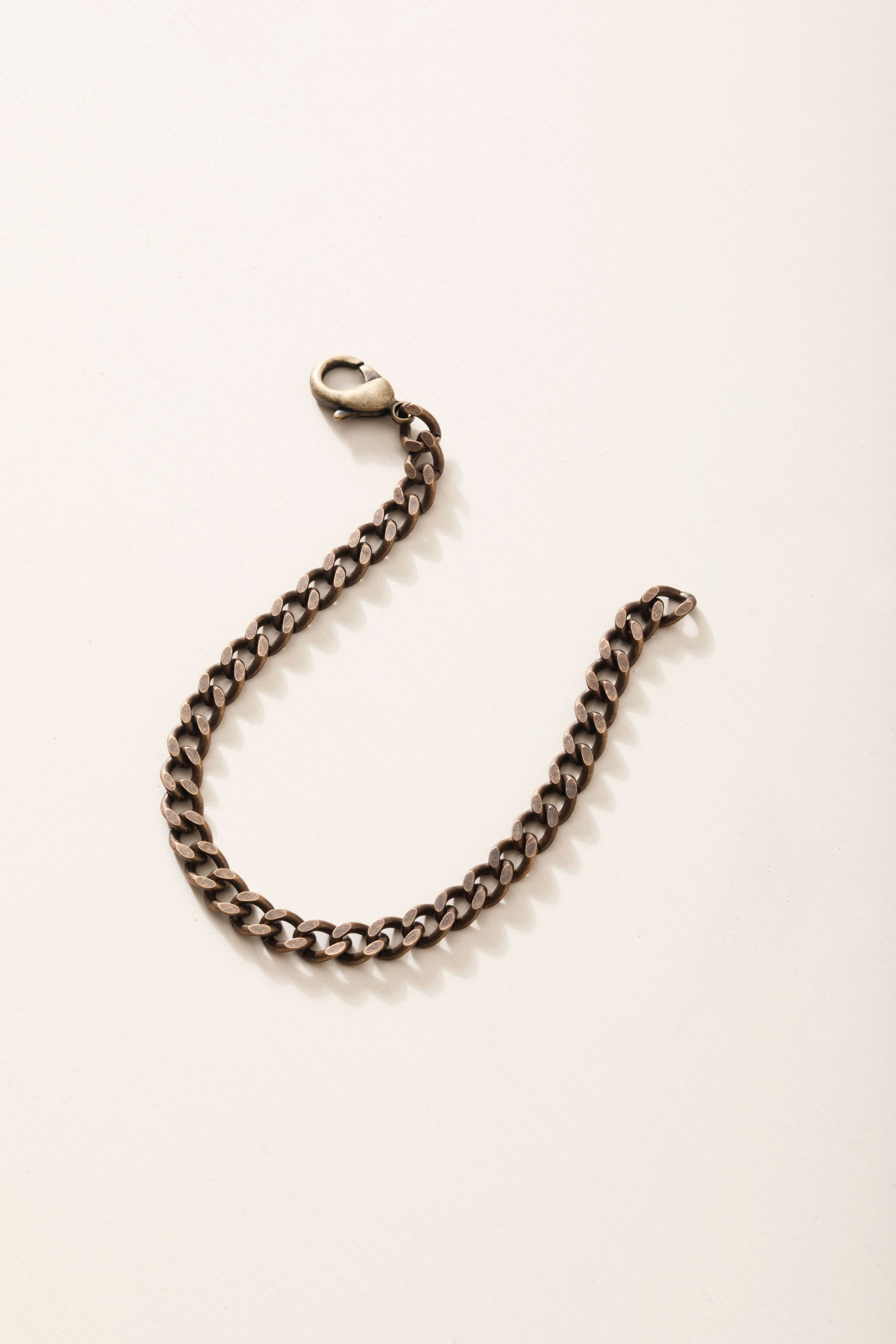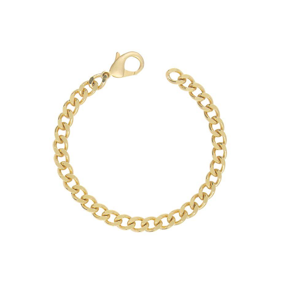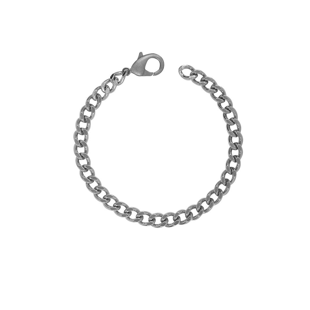 Chain bracelet with a large metal clasp. Adjustable to any length. Available in gold plated, antique silver, shiny silver, and brass.