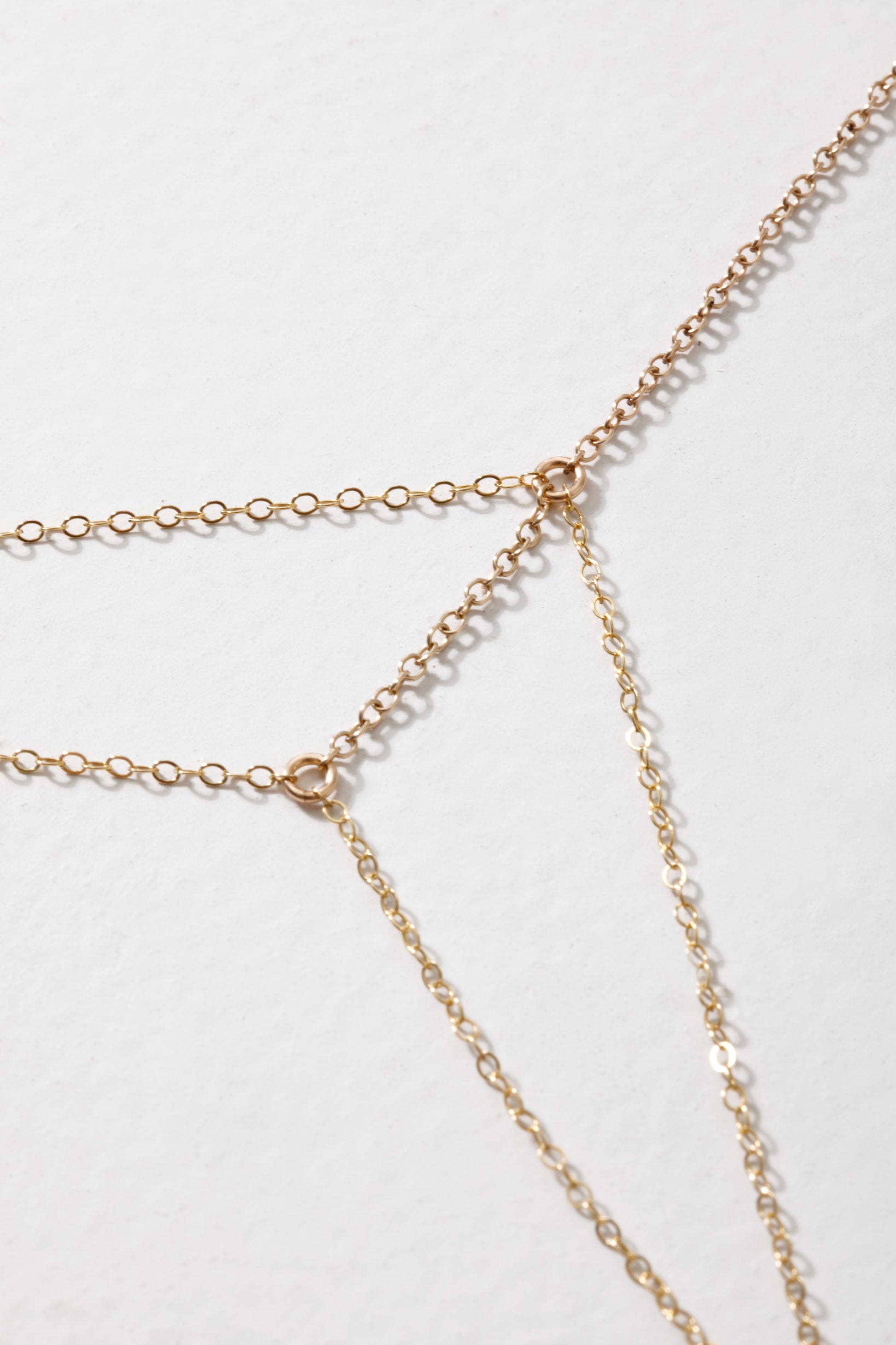 This delicate yet daring hand chain will perfectly complement any outfit, day to night. Available in 14k gold-filled chain or starling silver.