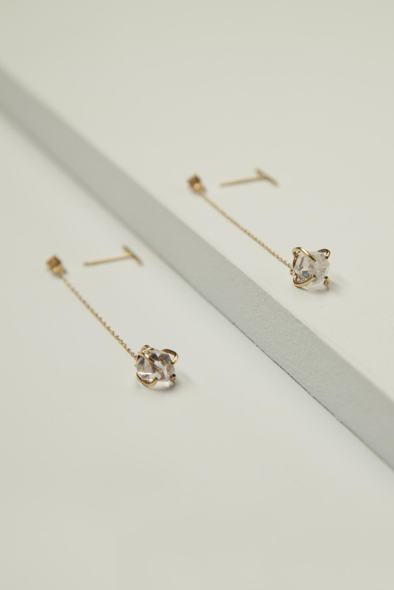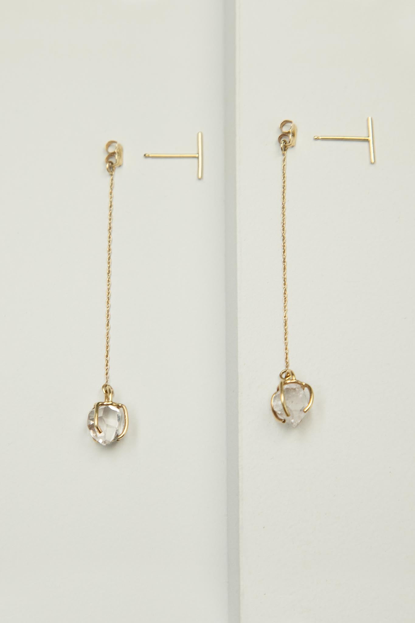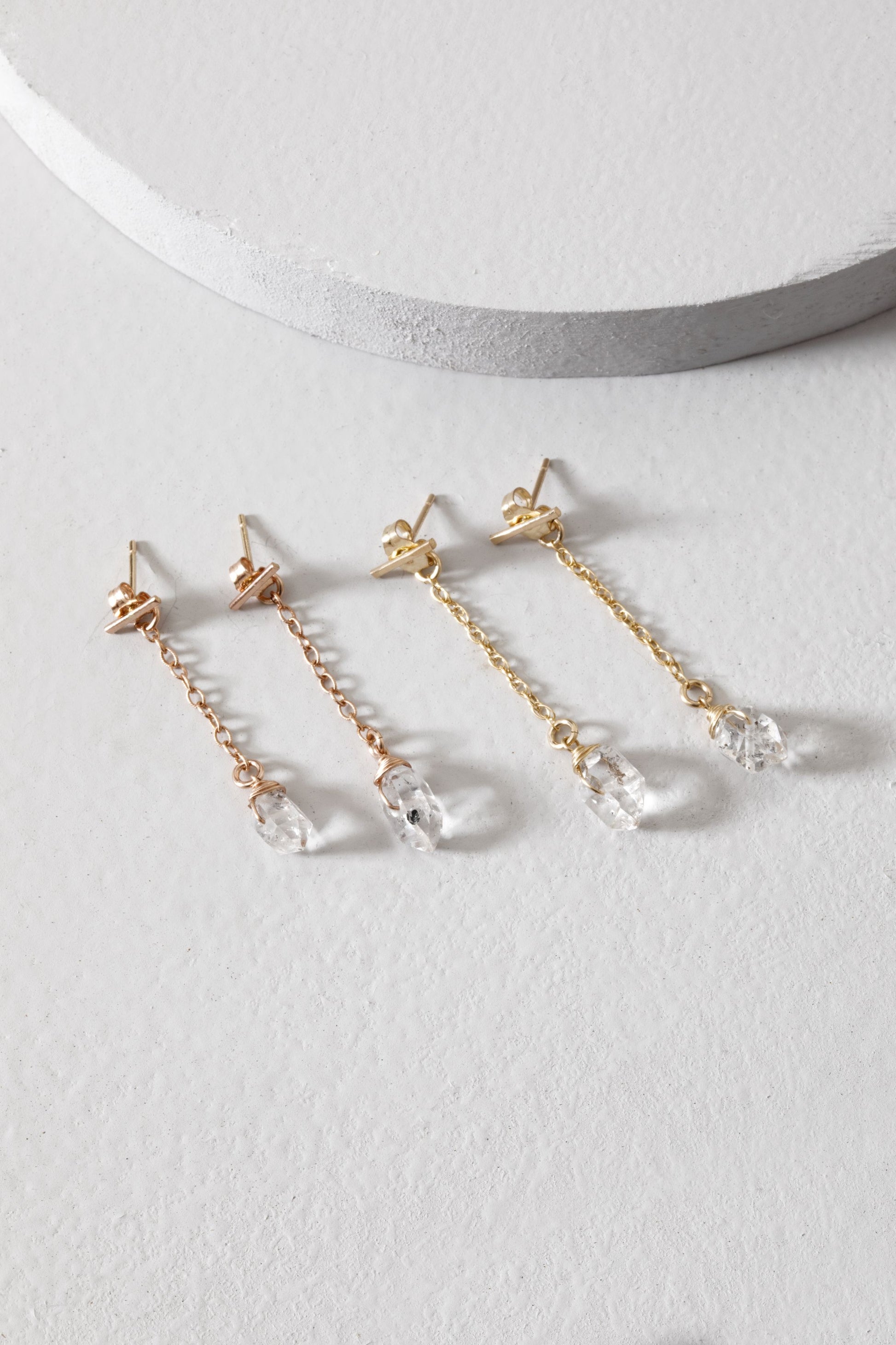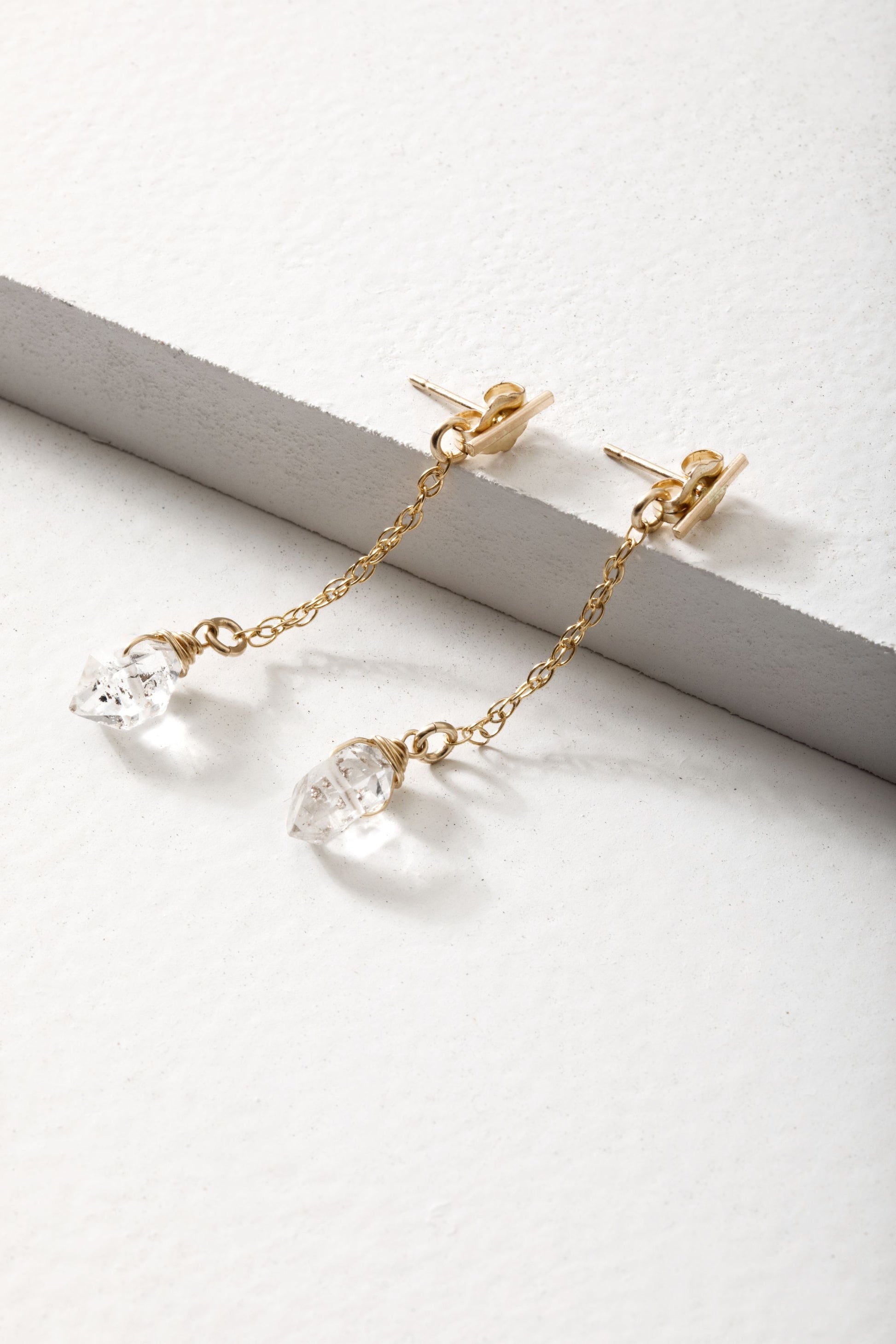 Delicately hammered bar studs with an optional herkimer diamond gemstone backing - we include two backings (one without the herkimer diamond dangle and one with to give you versatility in your earrings).