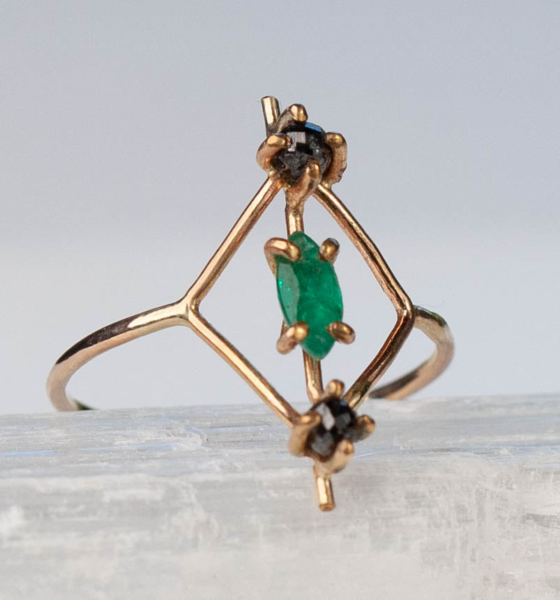 Black Diamond/Emerald Estella Ring