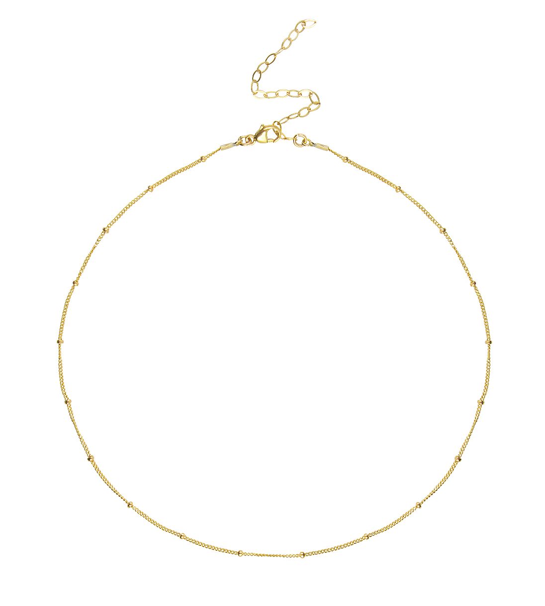 A delicate chain choker with added accents to resemble the stars in a constellation. Available in sterling silver, 14k gold-filled, and rose gold-filled.
