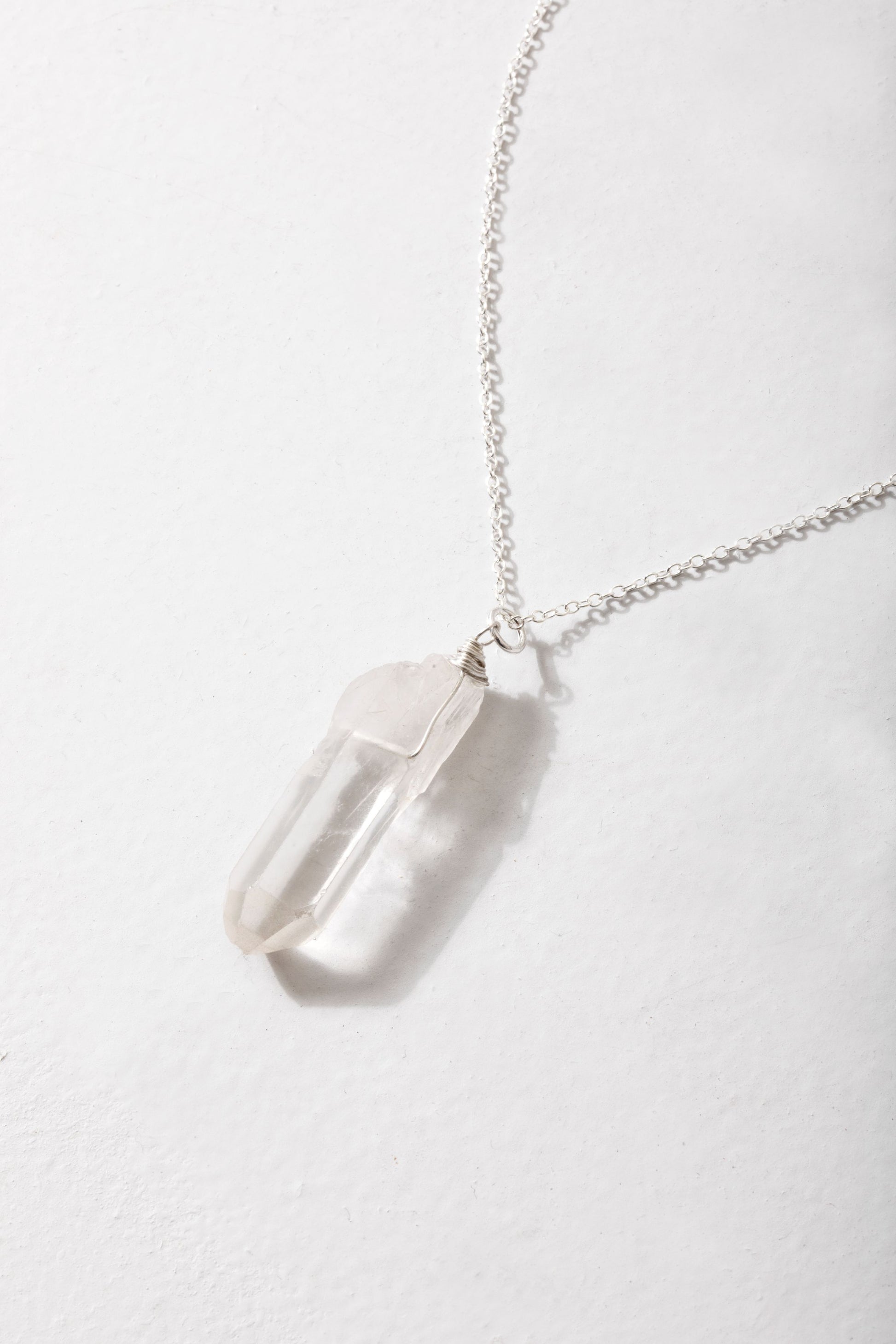 This necklace features a Clear Crystal Quartz pendent, and is available on a sterling silver chain.