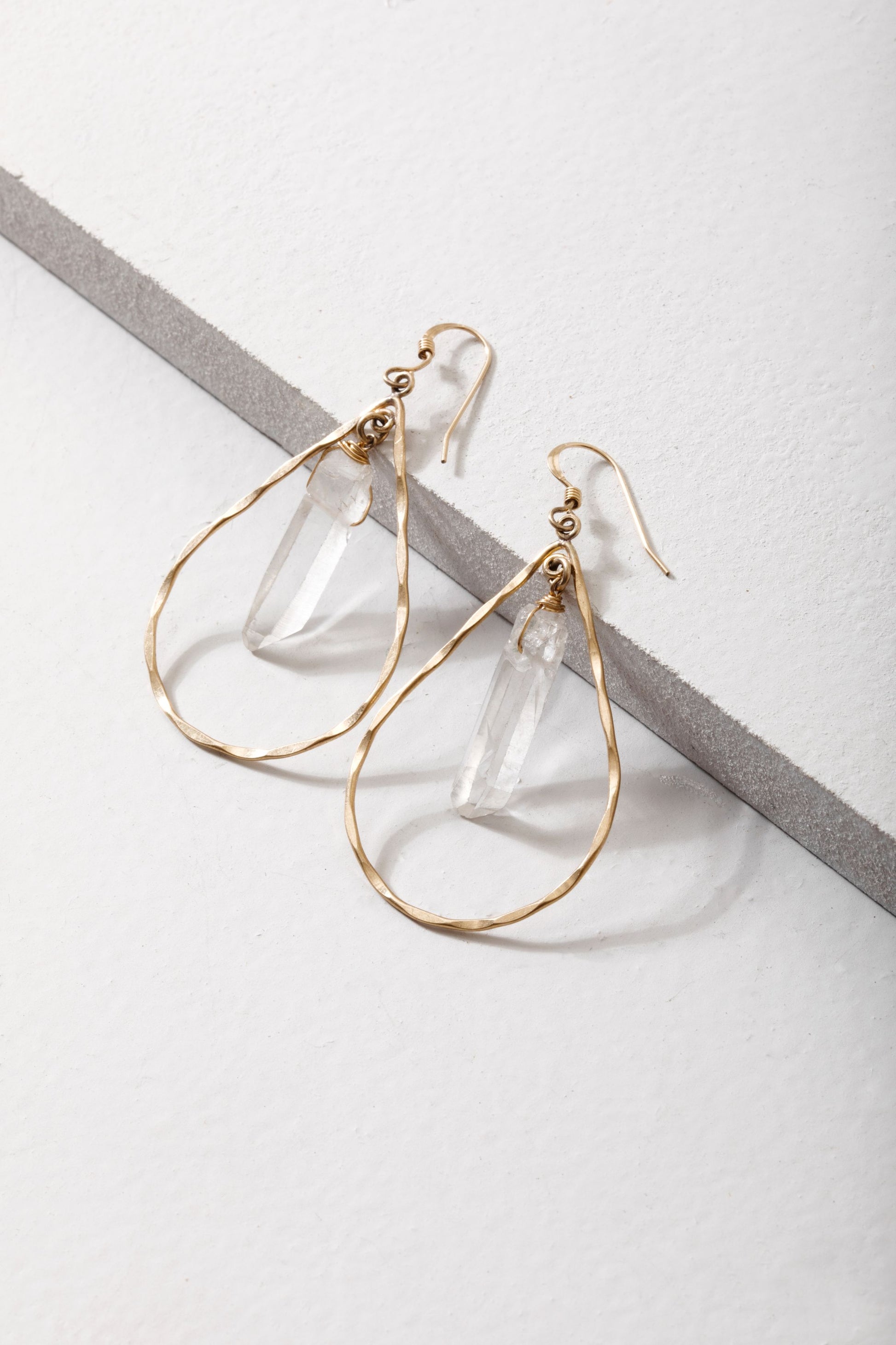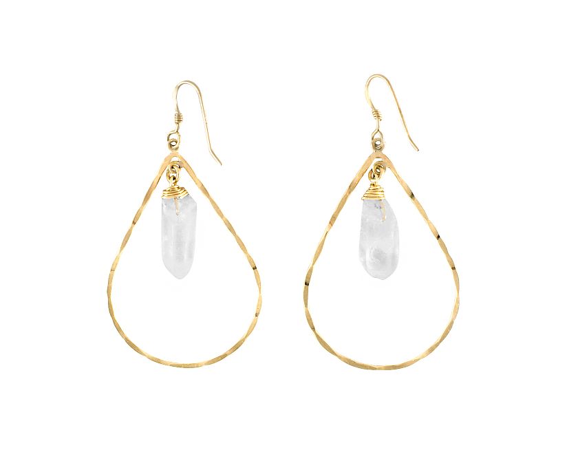 14k gold-filled hoop earrings with natural clear quartz crystals. Also available in sterling silver.