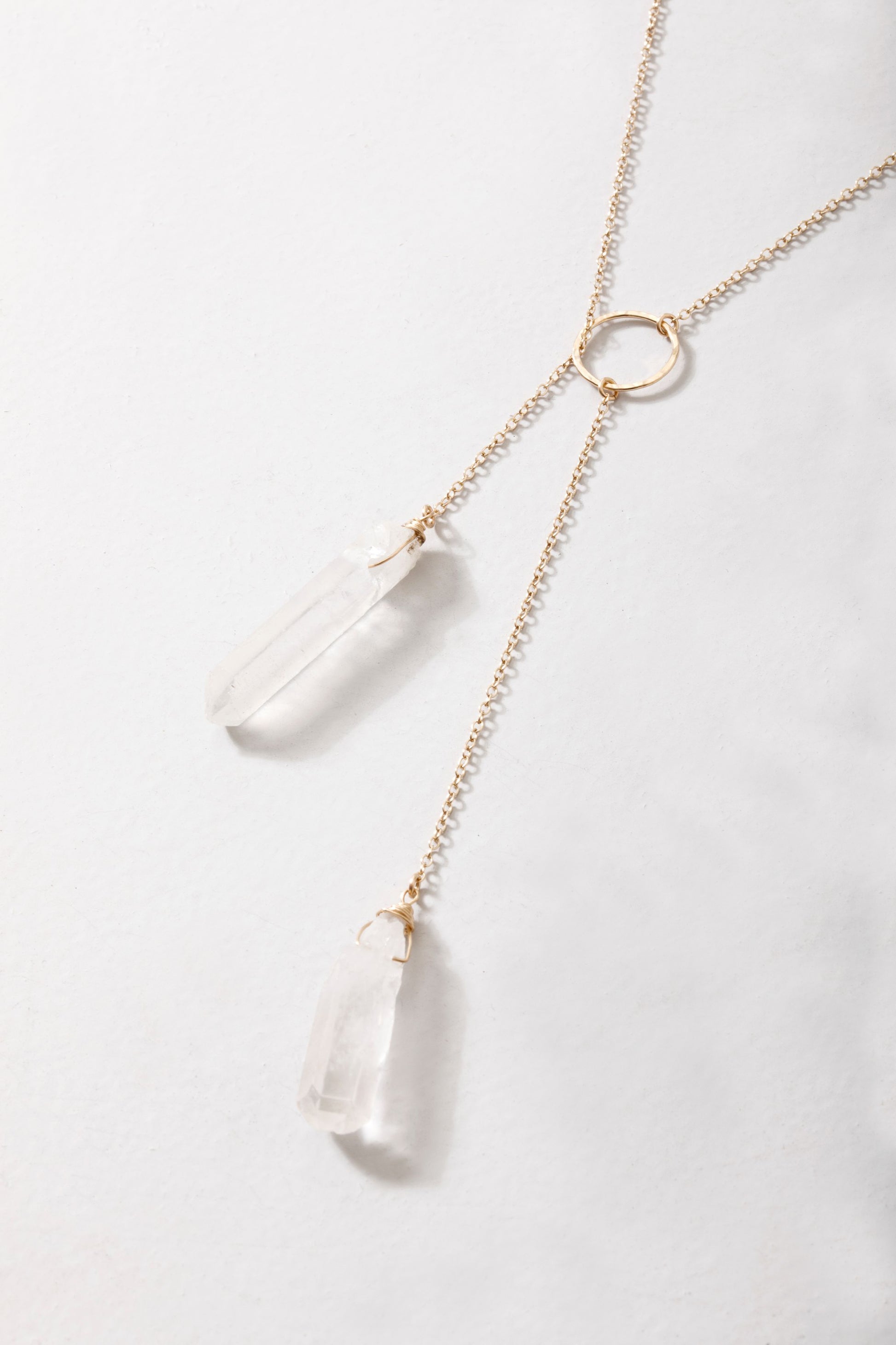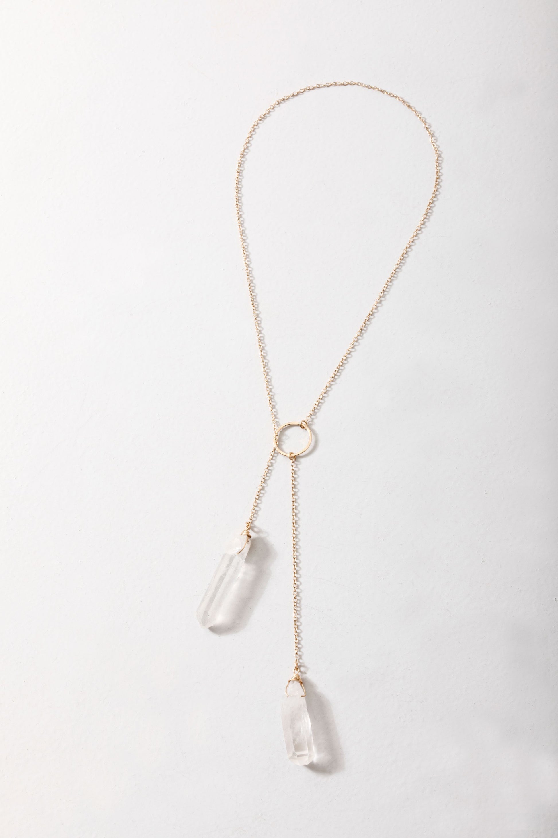 Stunning Crystal Lariat necklace featuring clear quartz. Available in 14k Gold filled and sterling silver.