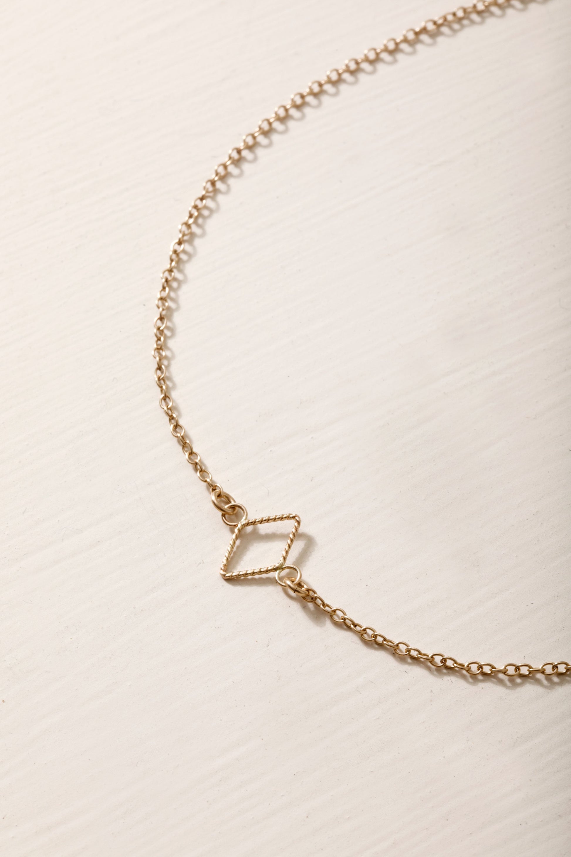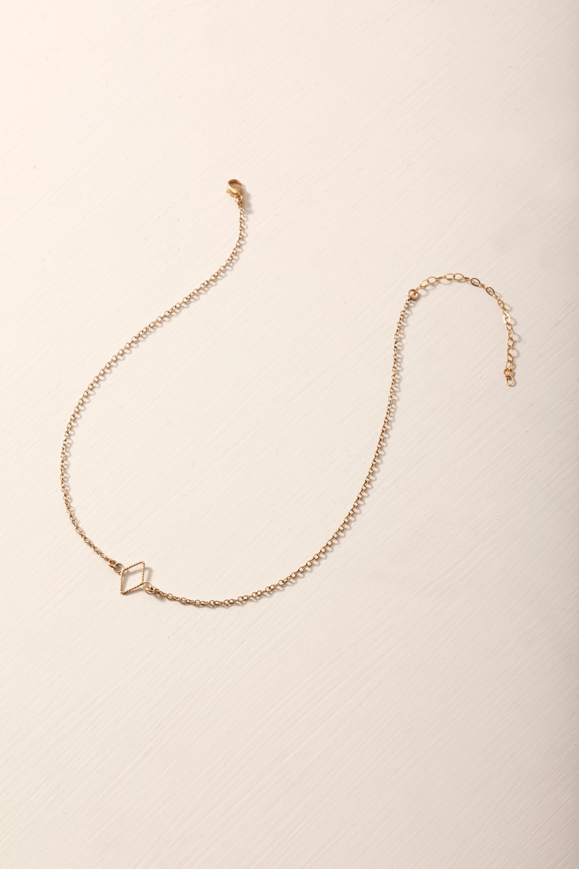 This beautiful diamond shaped pendant choker features an added extension chain to ensure a perfect fit. Available in sterling silver, 14k gold-filled, and rose gold-filled.