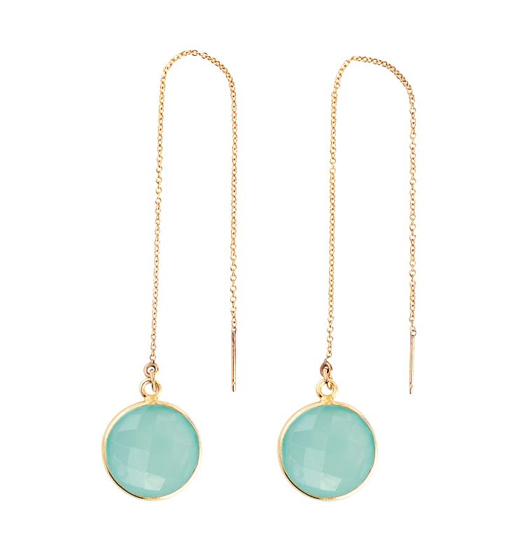 Bezeled sea green chalcedony earrings made with 14k gold-filled earring chain. Also available in sterling silver.