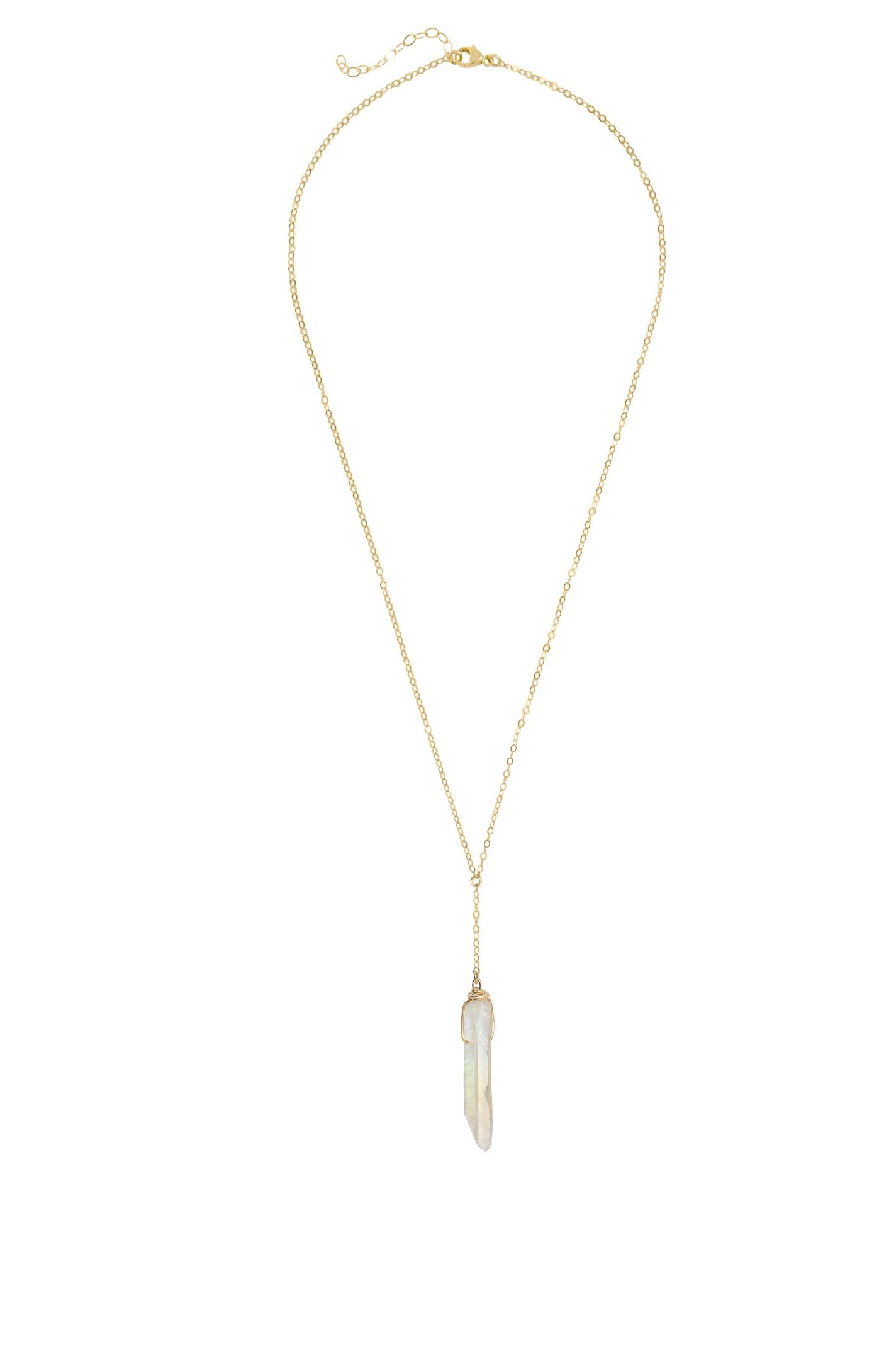 This necklace is simple, delicate, and a perfect everyday piece. It features an iridescent, angel aura quartz and 14k gold-filled chain. Also available in sterling silver and 14k rose gold-filled.