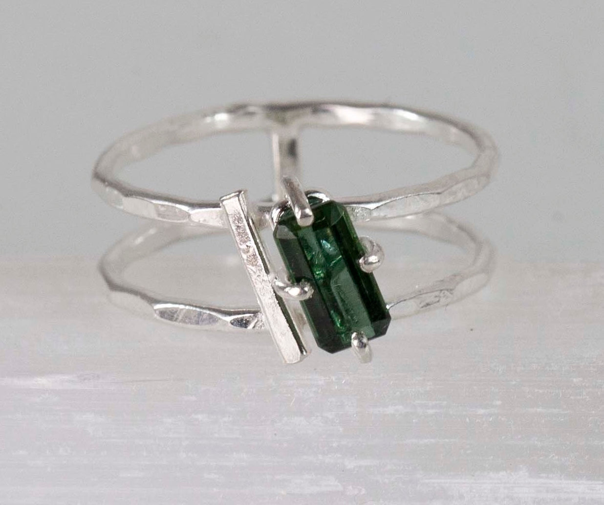 Green Tourmaline Slanted Bar Ring
