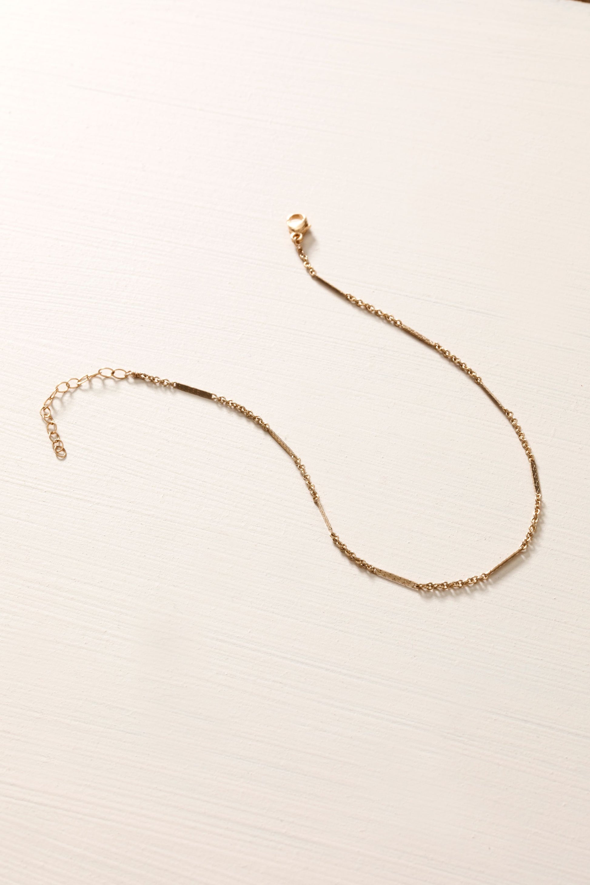 A minimalist14k gold-filled Hemingway anklet, also available in sterling silver.