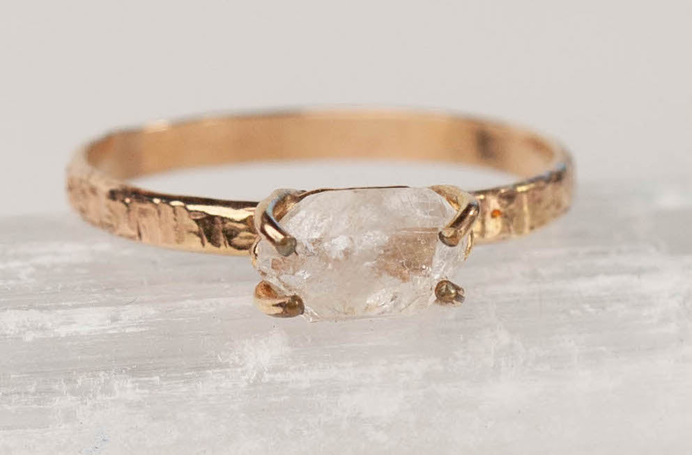 Herkimer Diamond Crosshatch Band Ring