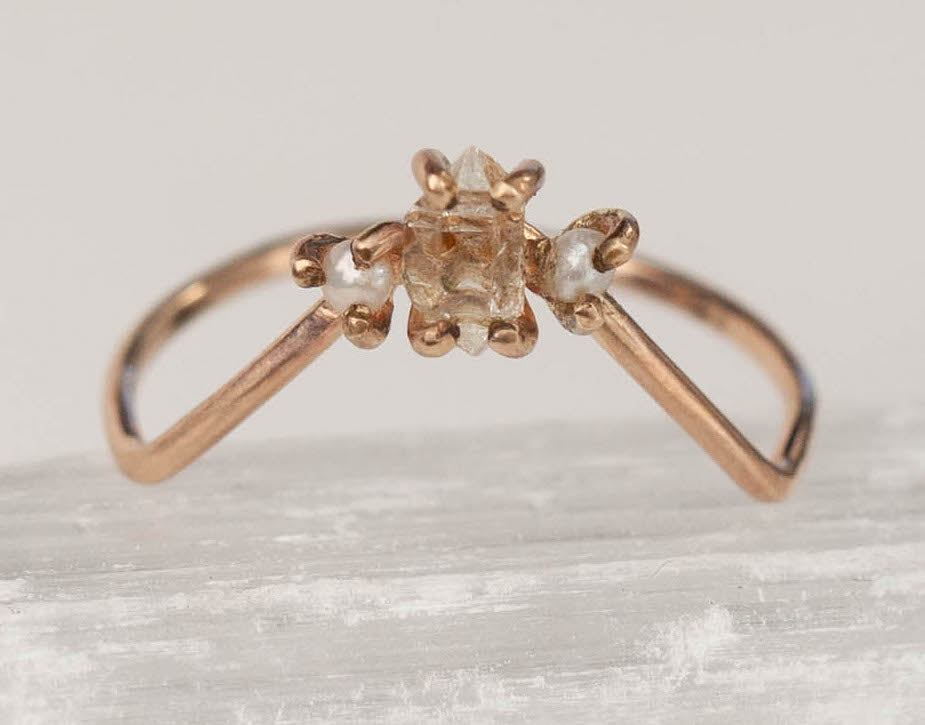 Most rings are one of a kind pieces and come as is. If you find that this ring is not for you, you can return the ring to us at a market (insert link of upcoming markets) or mail it in to our studio for store credit in the full amount of the ring minus shipping cost. We don’t do returns on altered/customized rings (for example, if you were to buy a ring and have us reset the piece in silver or do any resizing).