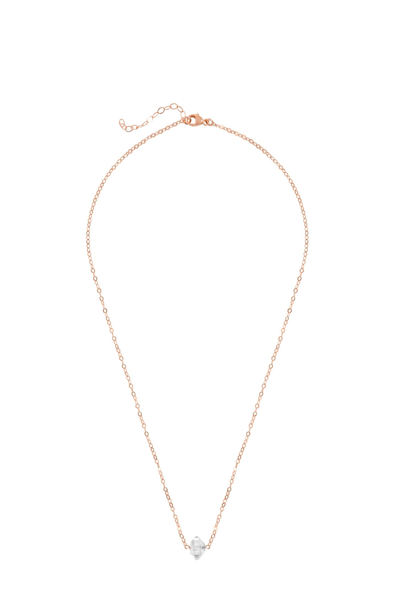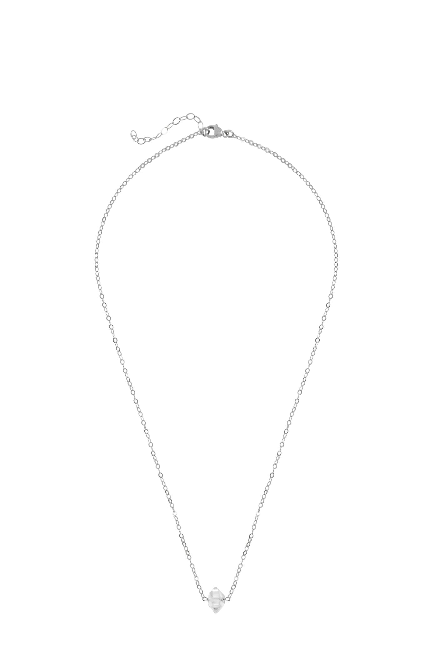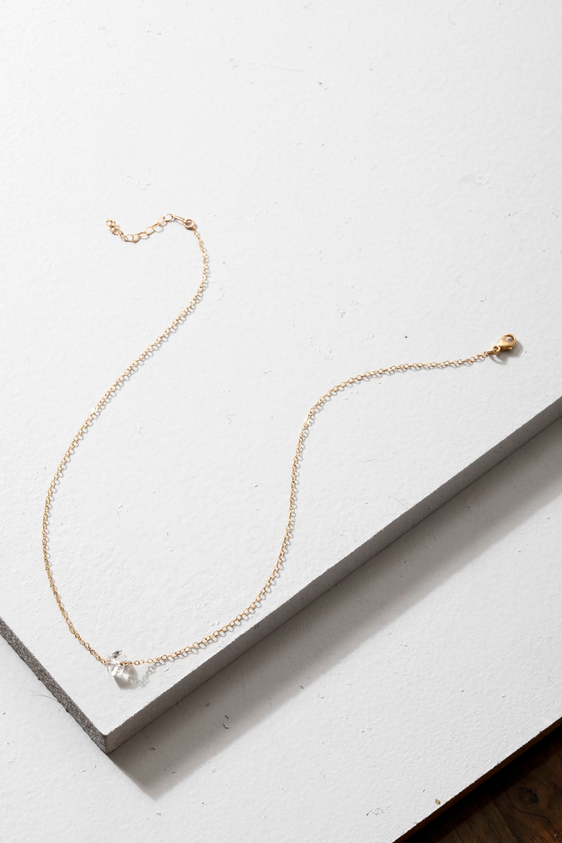 A delicate chain necklace featuring a Herkimer diamond, available in sterling silver, 14k gold-filled, and rose gold-filled.