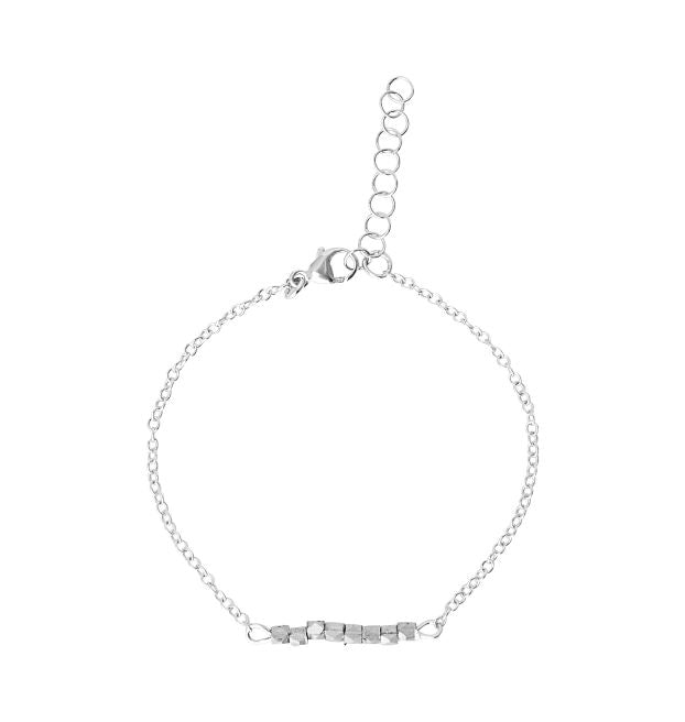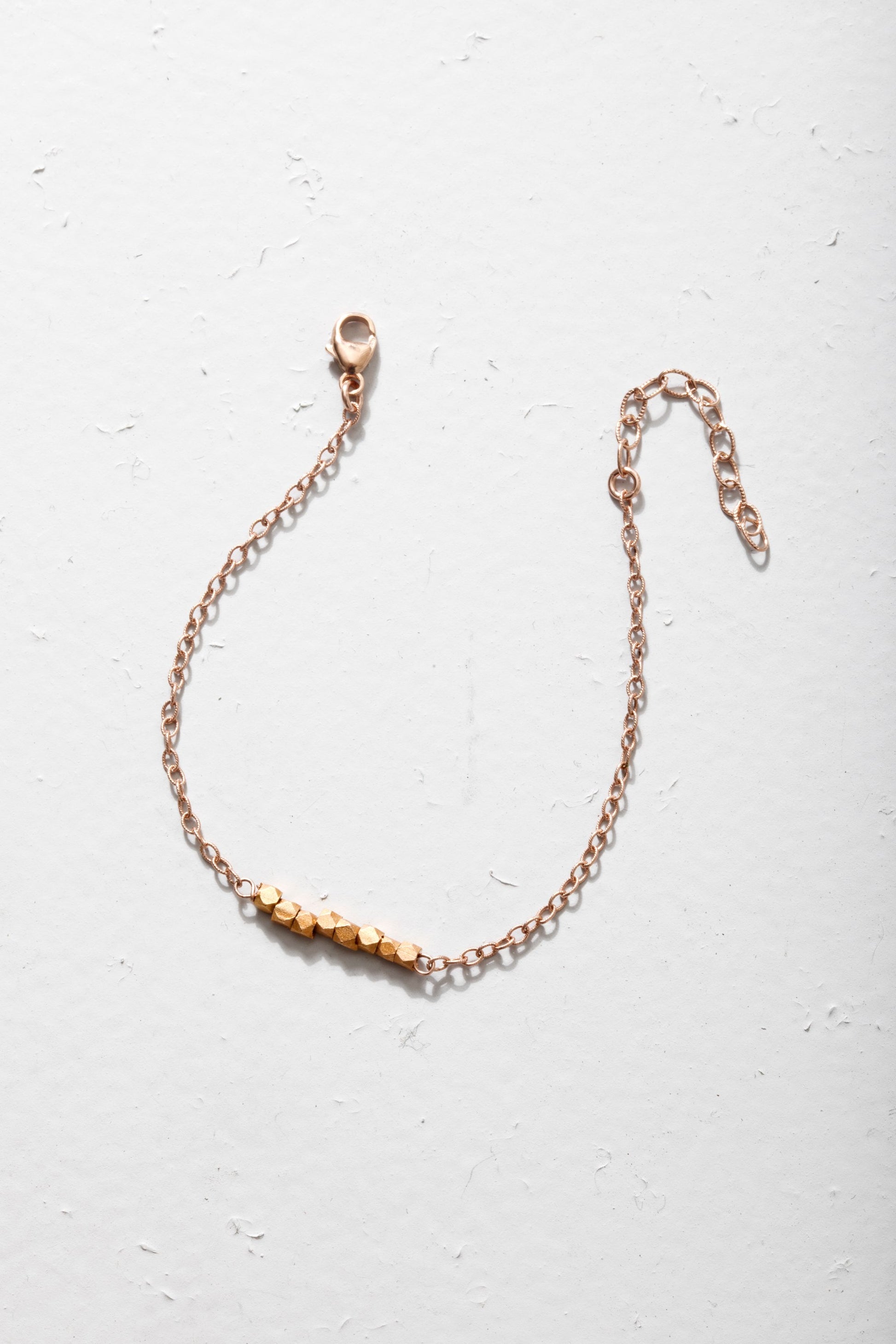 This bracelet is perfect for adding a simple touch to your look as well as to layer with multiple bracelets. Nuggets are brass or silver plated and chain is 14k gold-filled or sterling silver.