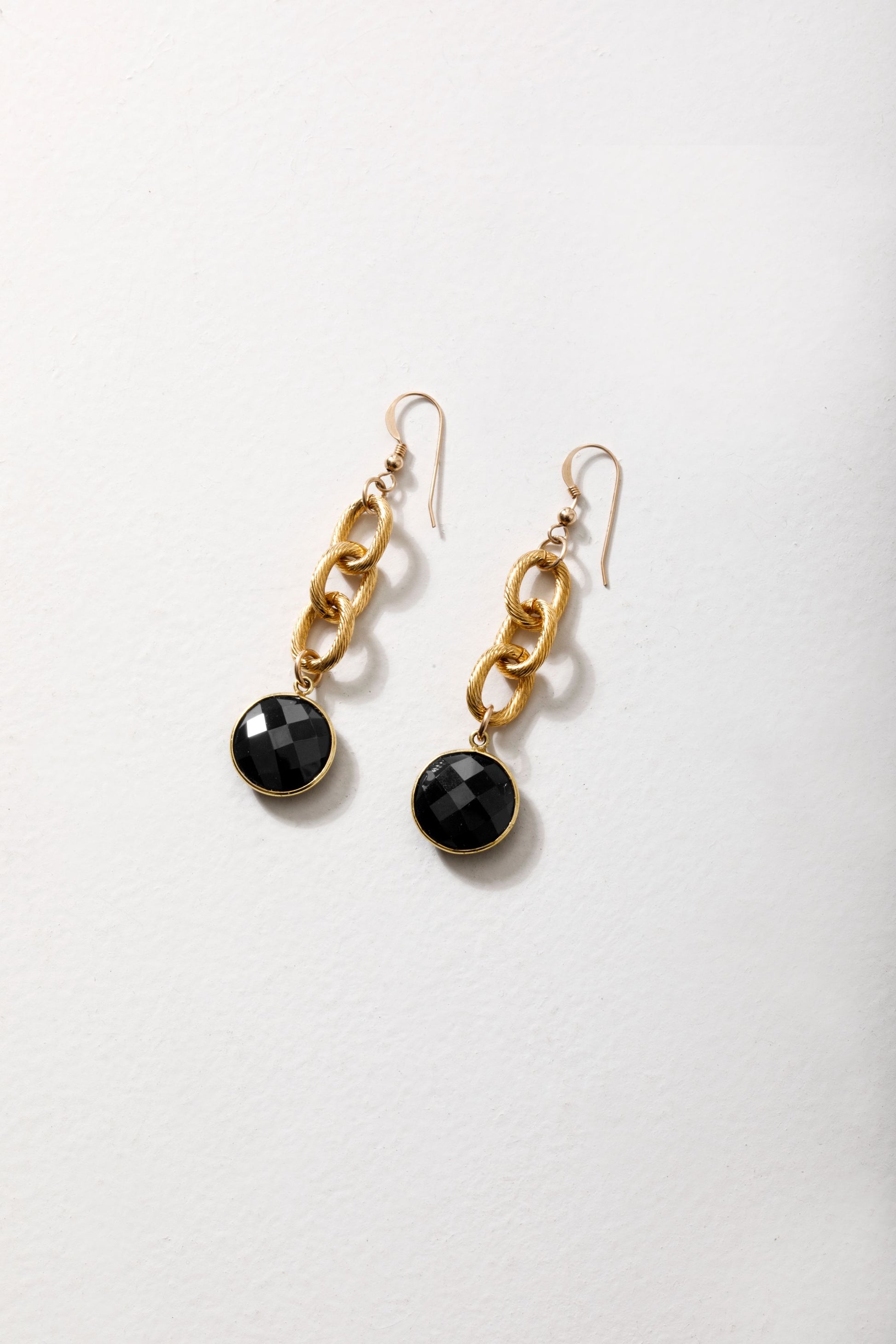 Gold plated brass chain with genuine black onyx gemstones and 14k gold-filled earring hooks. Also available in silver with sterling silver earring hooks.