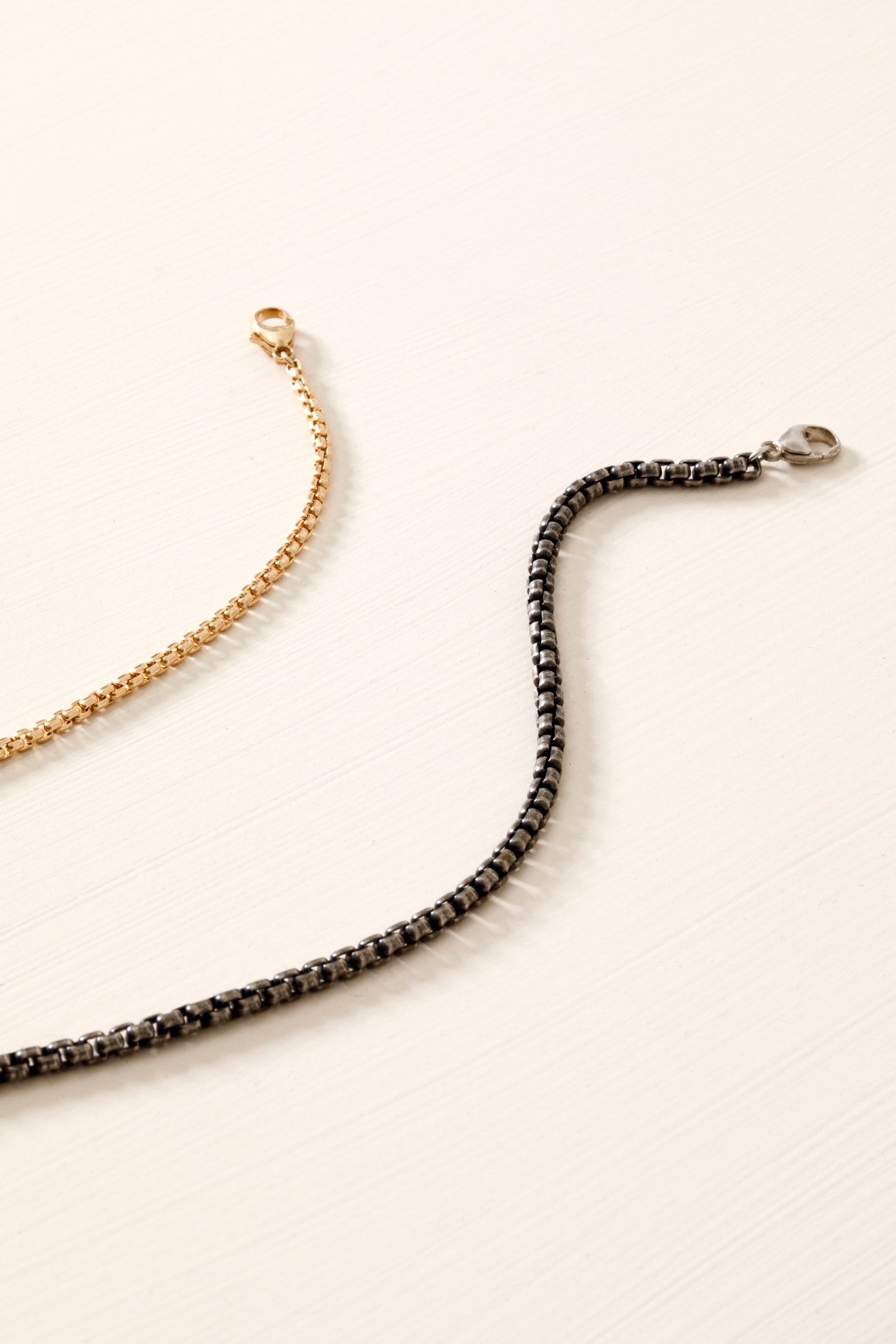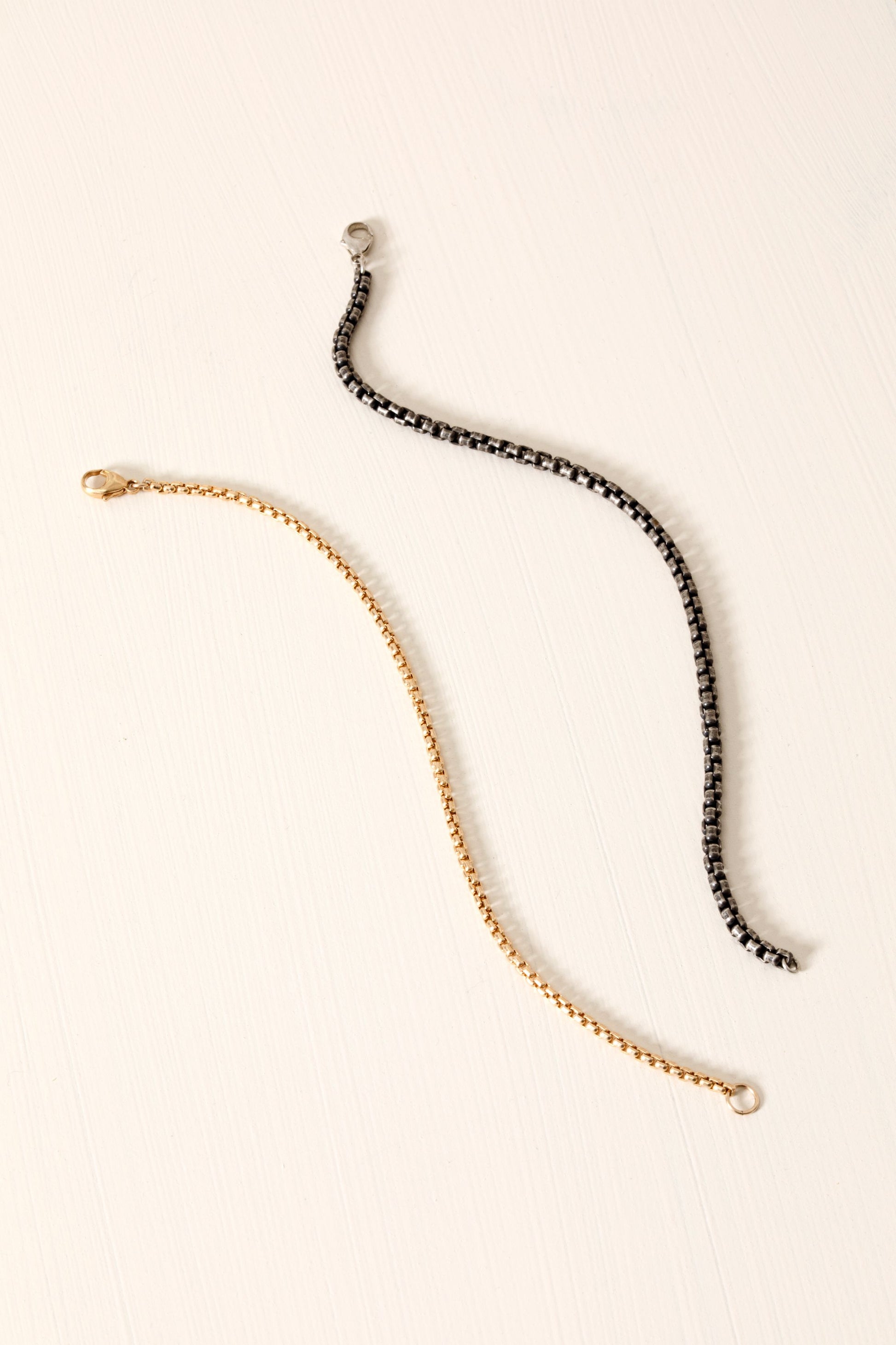 The Serpentine Chain bracelet is available in 14k Gold-Filled, and Sterling Silver options.