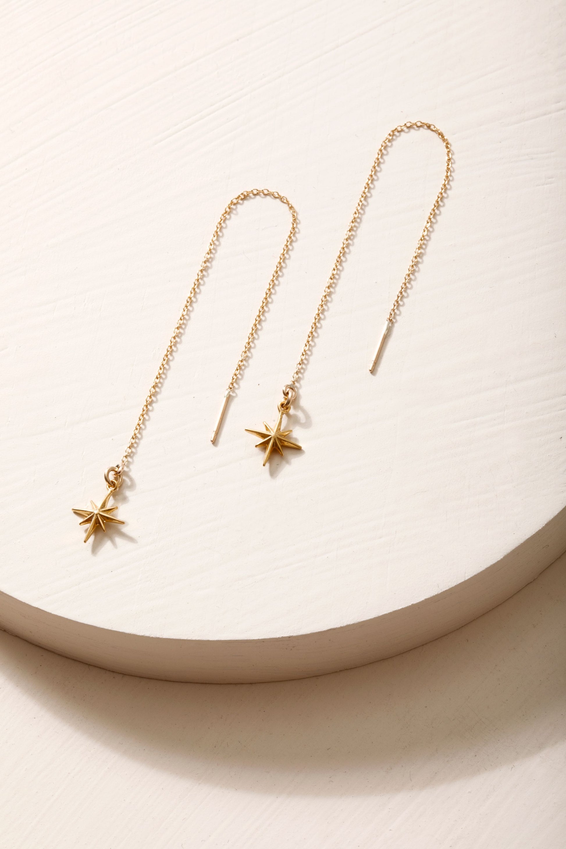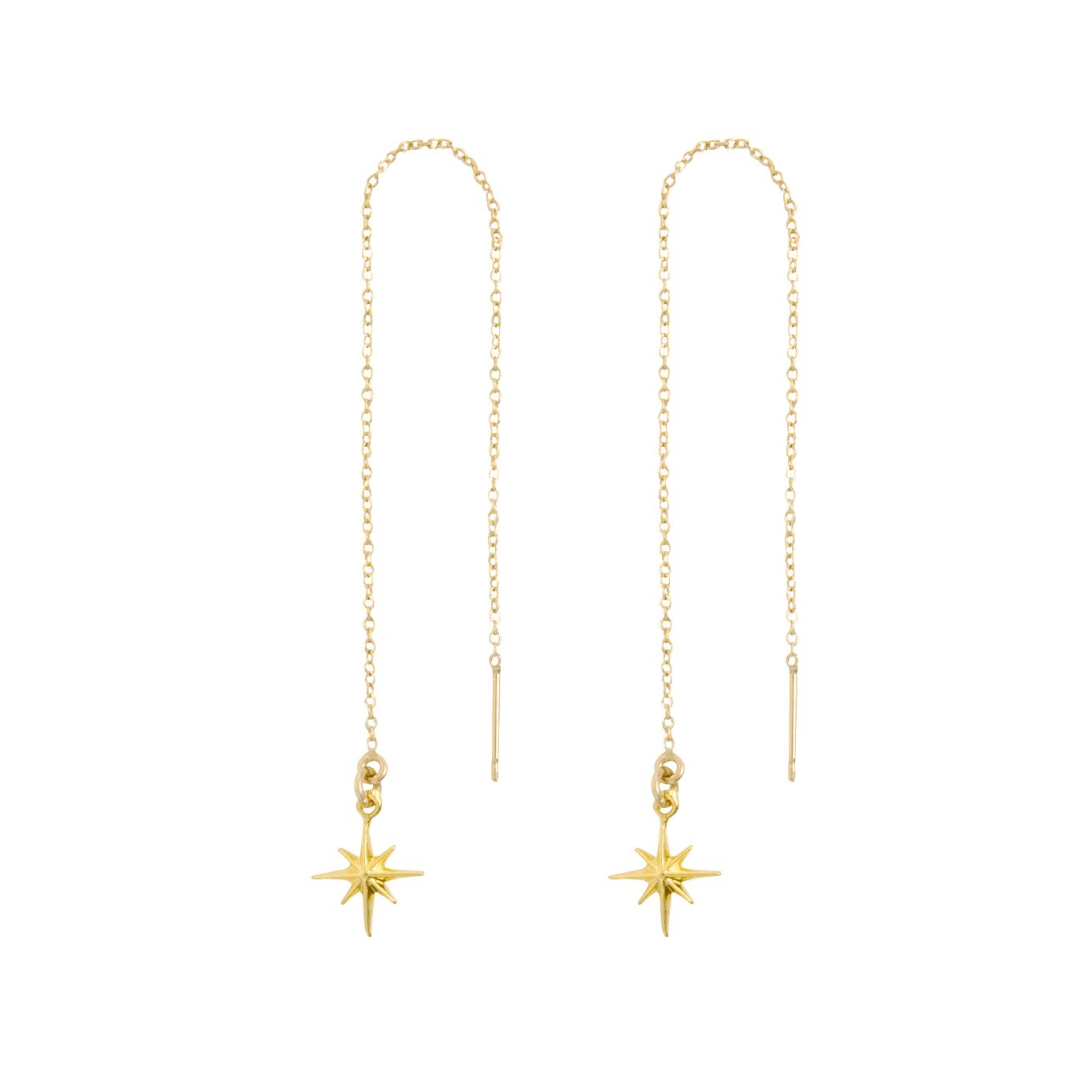 North Star pendants comes in both gold plated sterling silver and sterling silver with a 14k gold-filled or sterling silver earring chain. Earring backings are included so as to adjust and hold the earring at whichever length is desired.