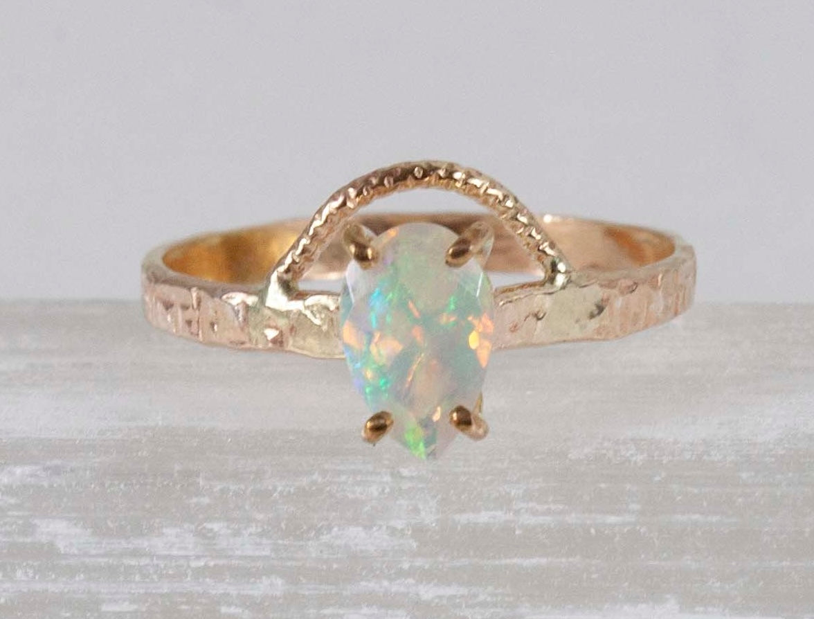 Opal Crosshatch with Swoop Ring