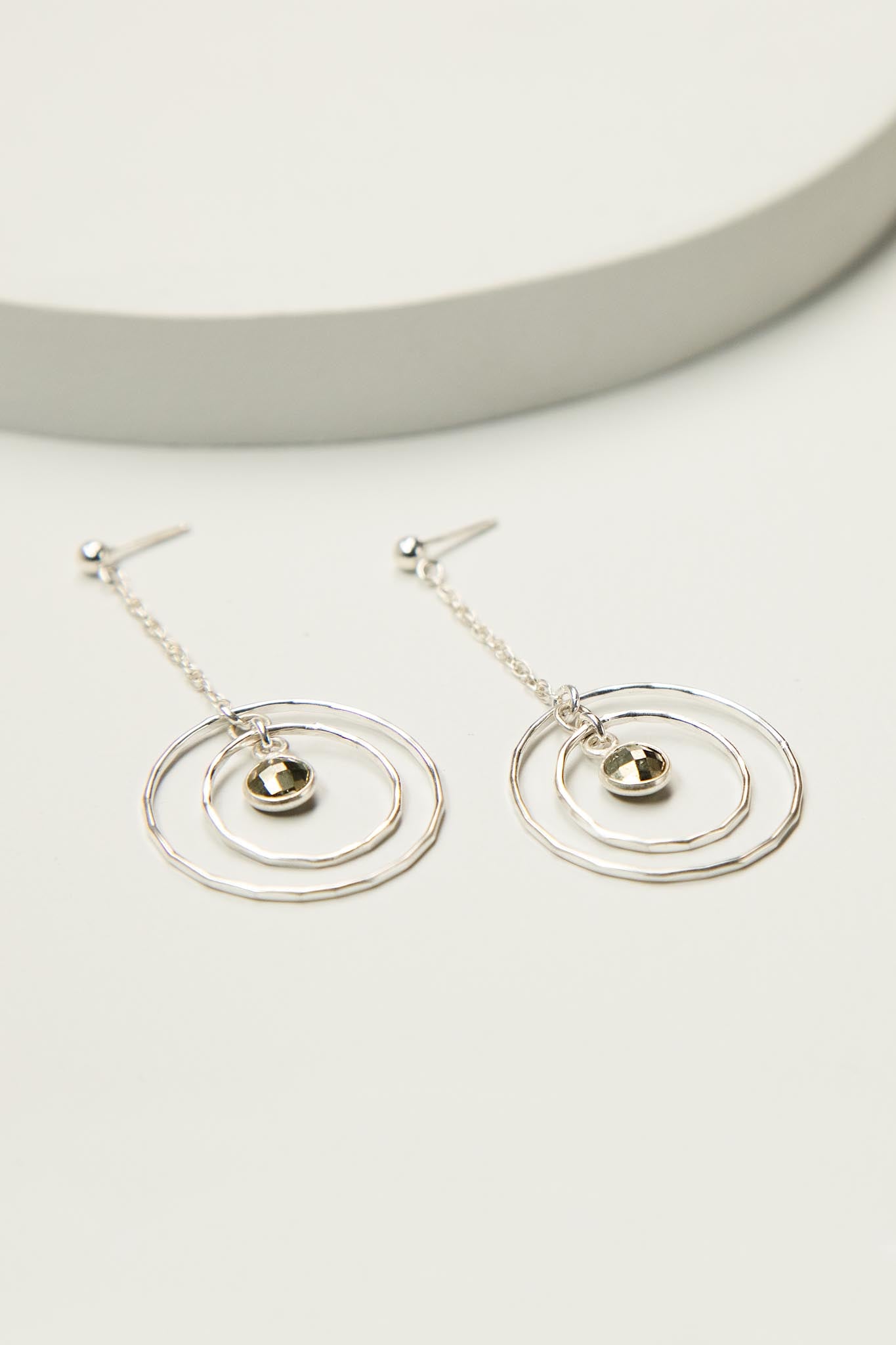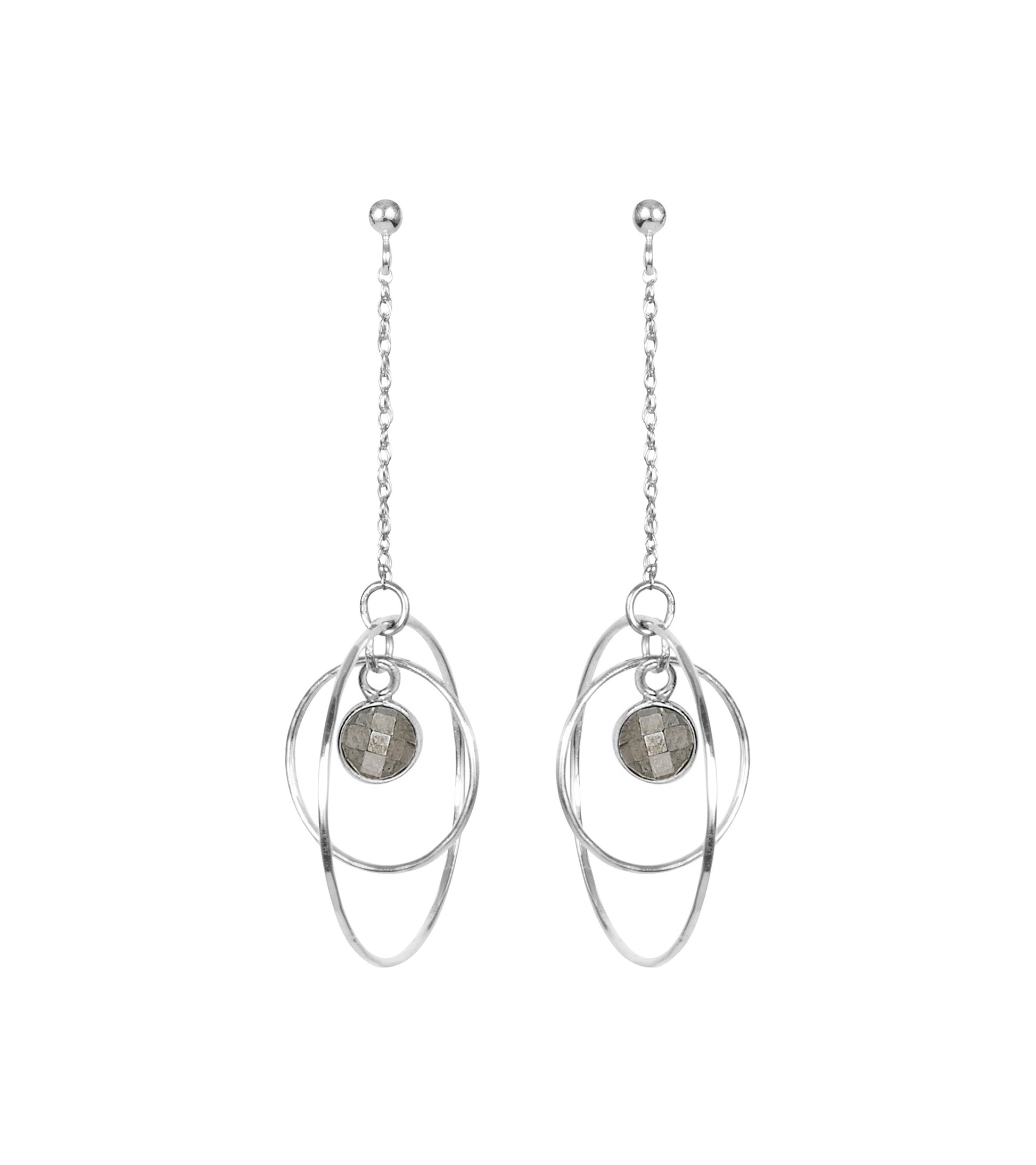 Natural pyrite gemstones encompassed by two sets of 14k gold-filled hoops. Also available in sterling silver and various stone options.