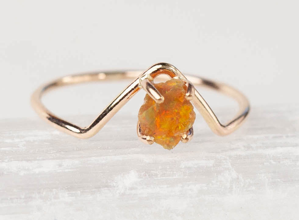 Raw Orange Opal Chevron Ring