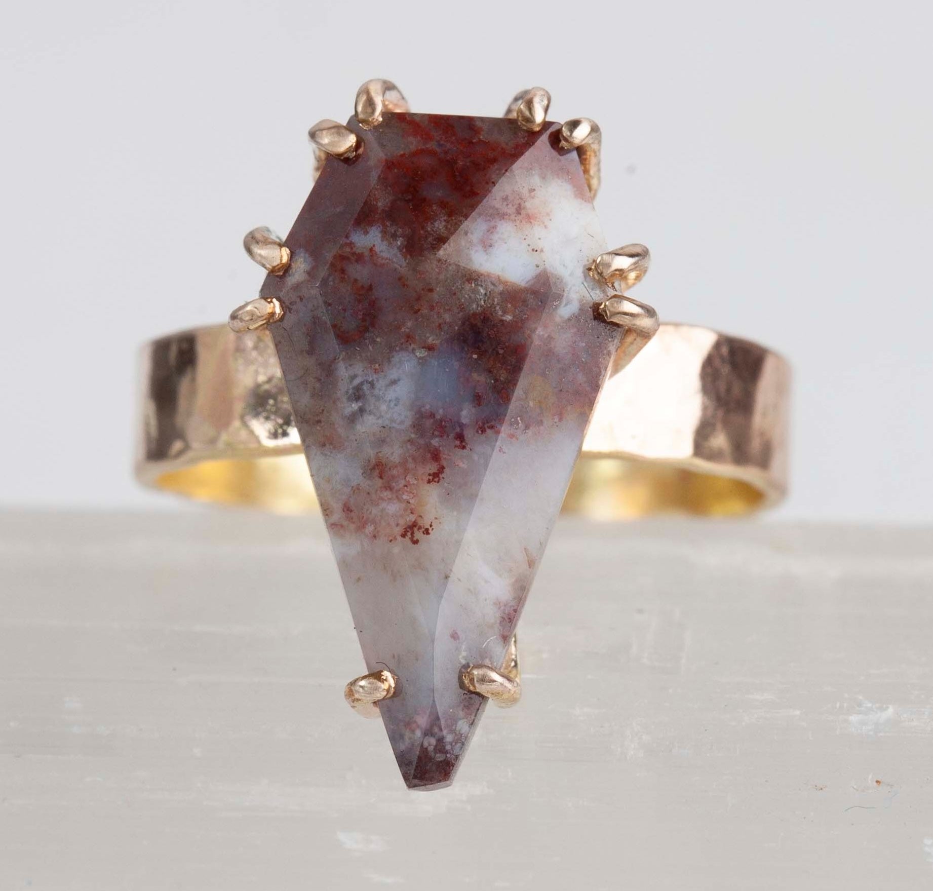 Red Moss Agate Thick Hammered Band Ring