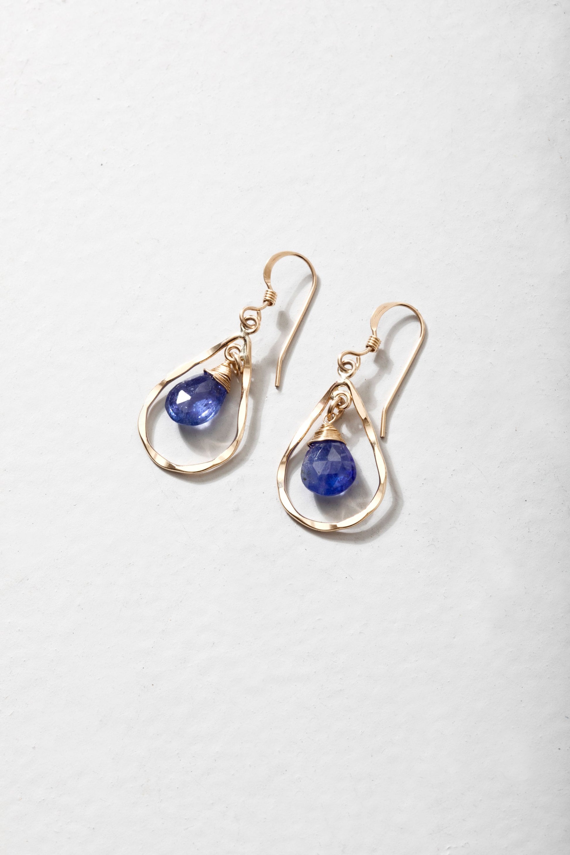 Tanzanite Teardrop Hoop Earrings featuring Tanzanite from Tanzania, and available in 14k gold-filled.