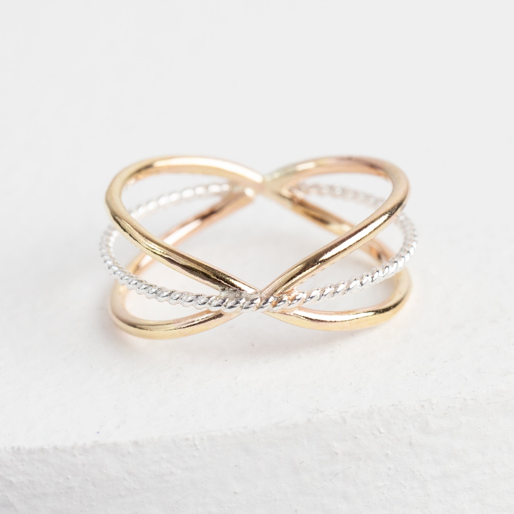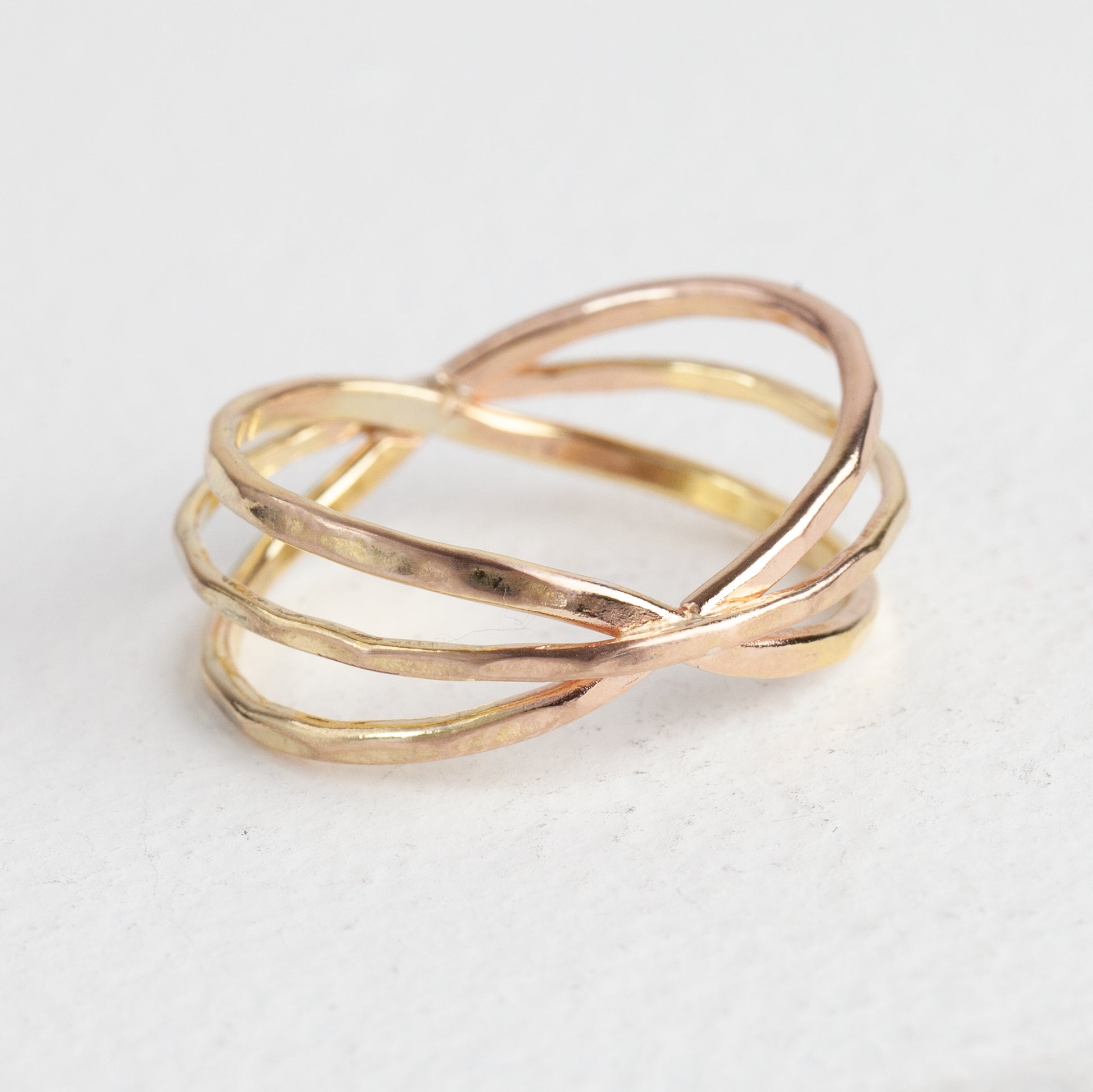 The Triple Criss Cross Ring is available in 14k gold-filled, 14k rose gold-filled and sterling silver.