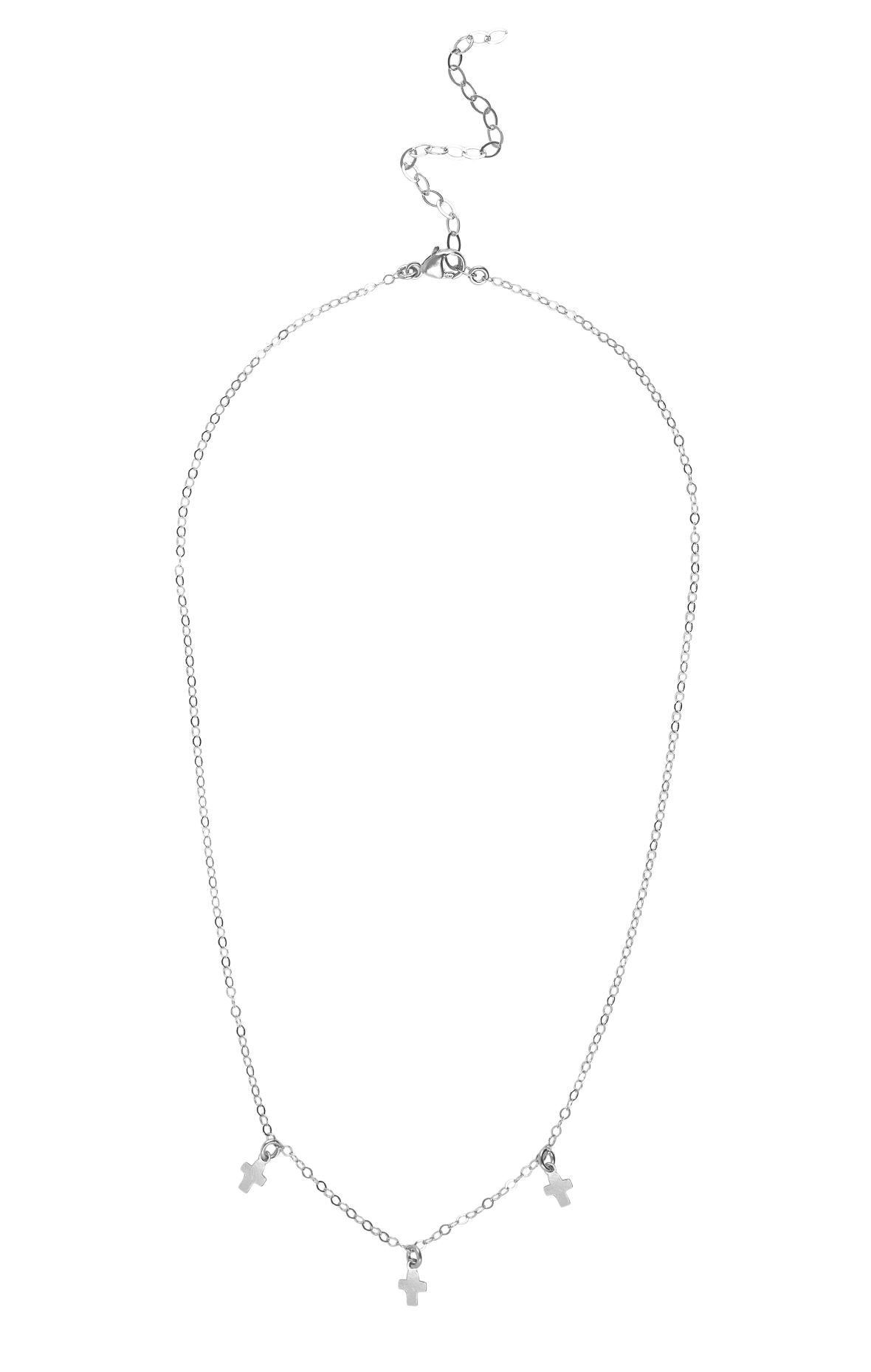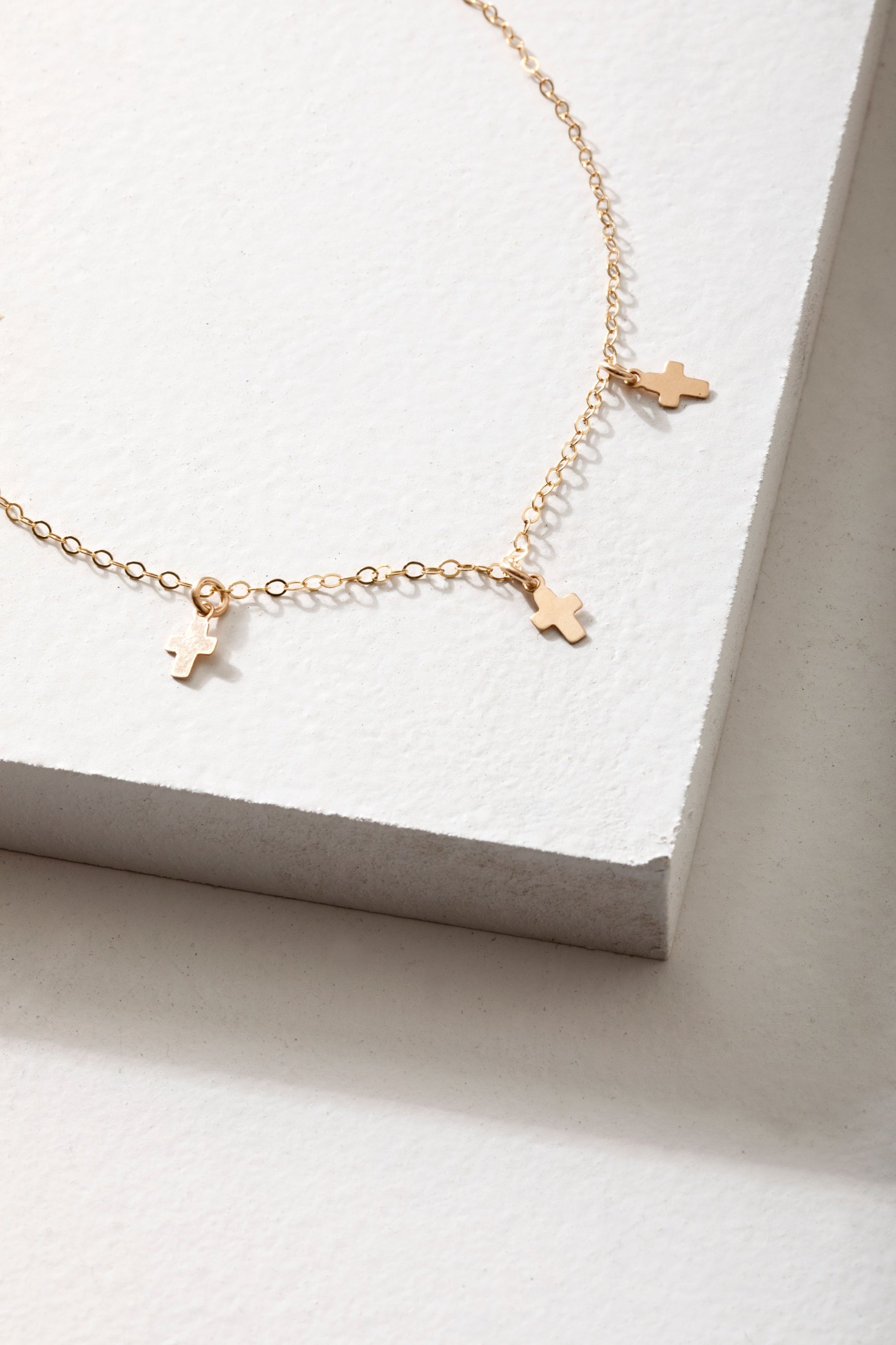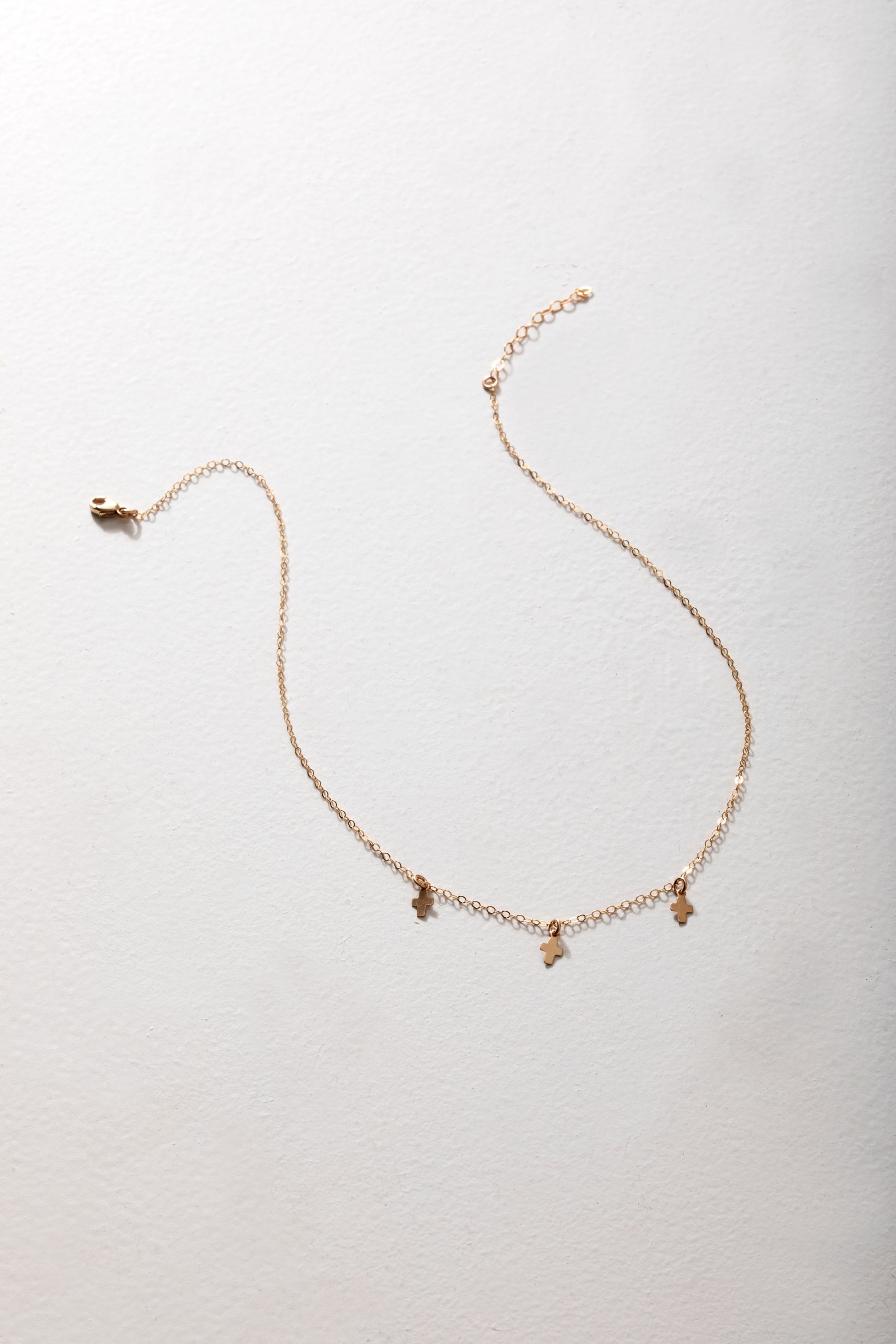 This choker features three dainty crosses and added extension chain to ensure a perfect fit. Available in sterling silver and 14k gold-filled.