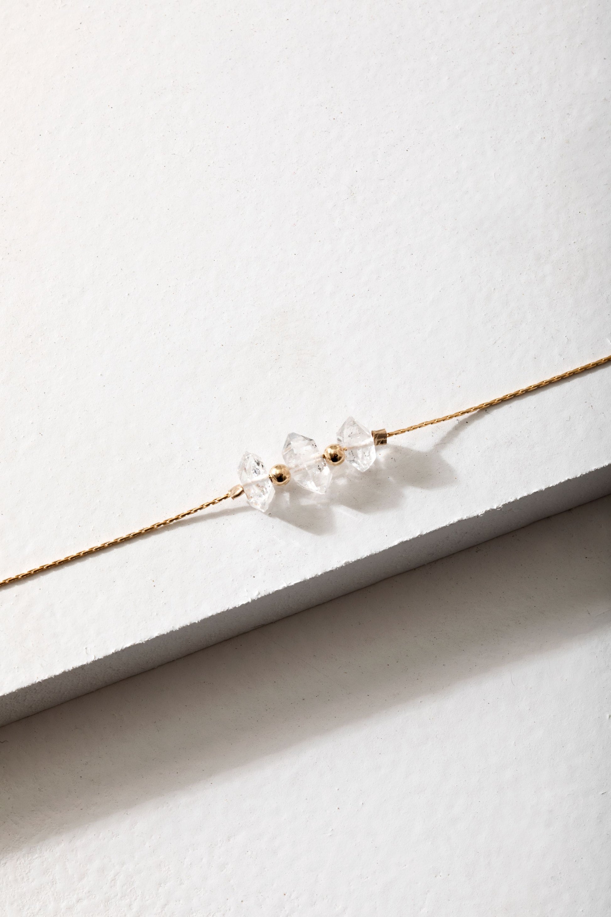This necklace is made with 3 naturally faceted herkimer diamonds and 14k gold-filled chain. Also available in 14k rose gold-filled and sterling silver.