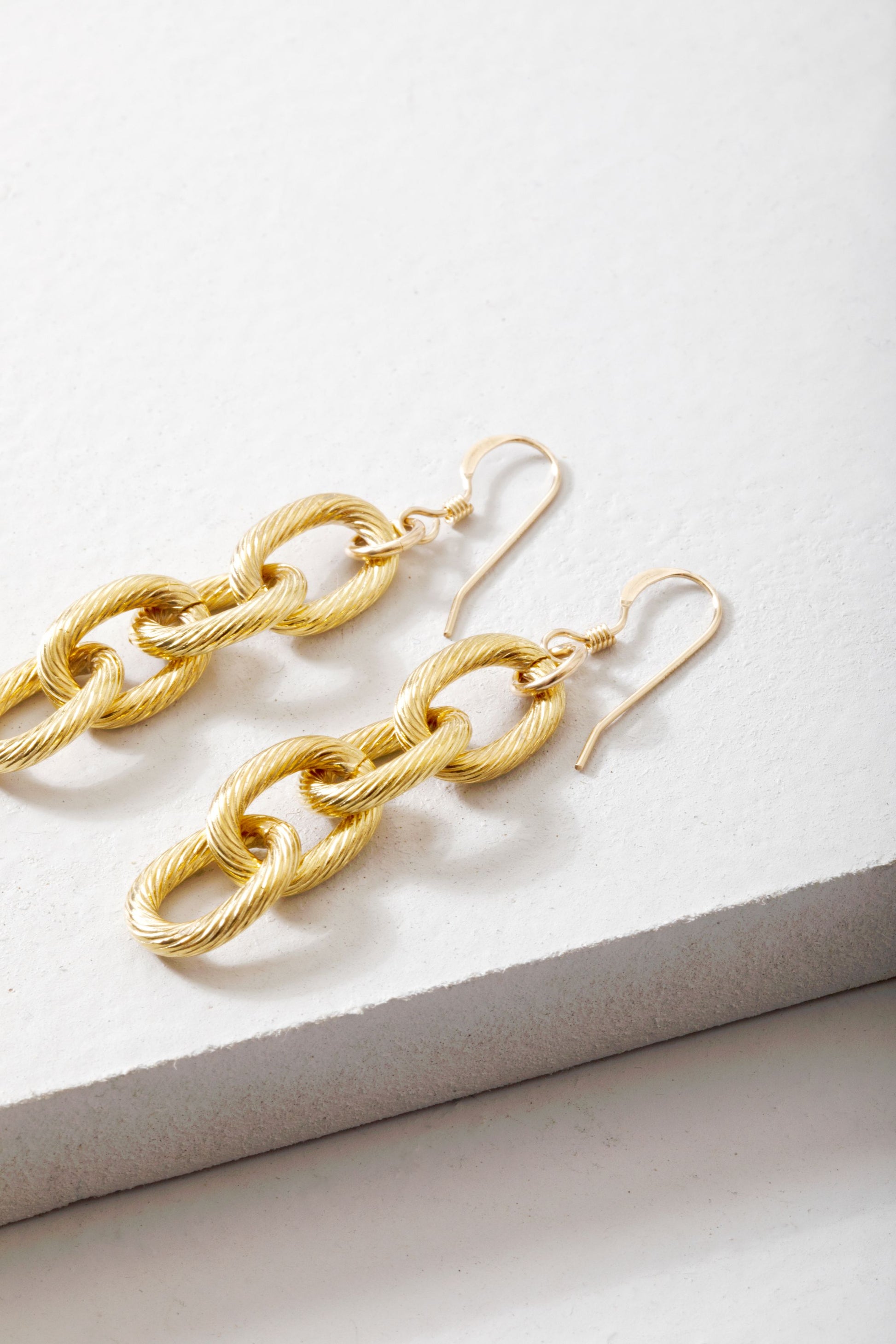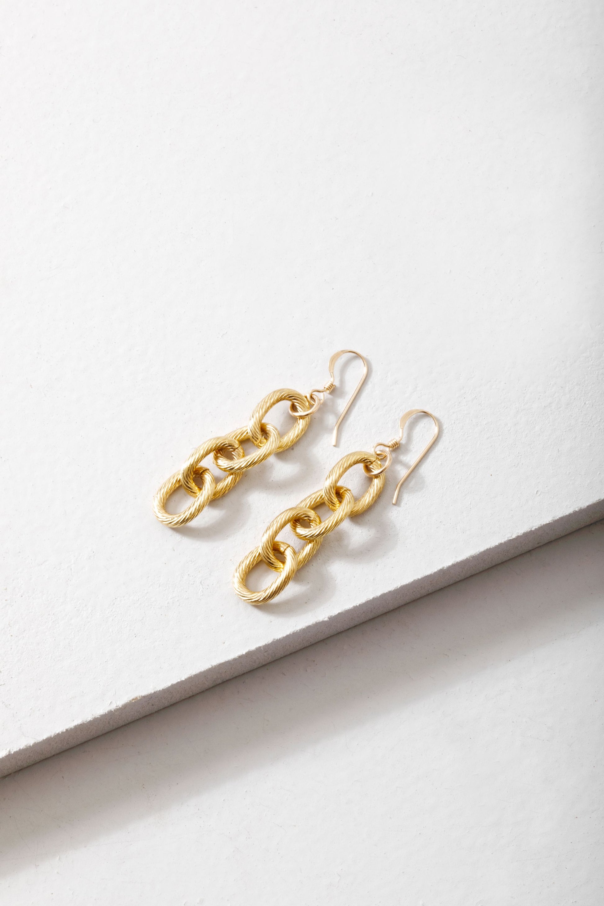 These earrings are edgy and classic in style. Available in both gold plated brass and silver plated brass with 14k gold-filled and sterling silver earrings hooks.