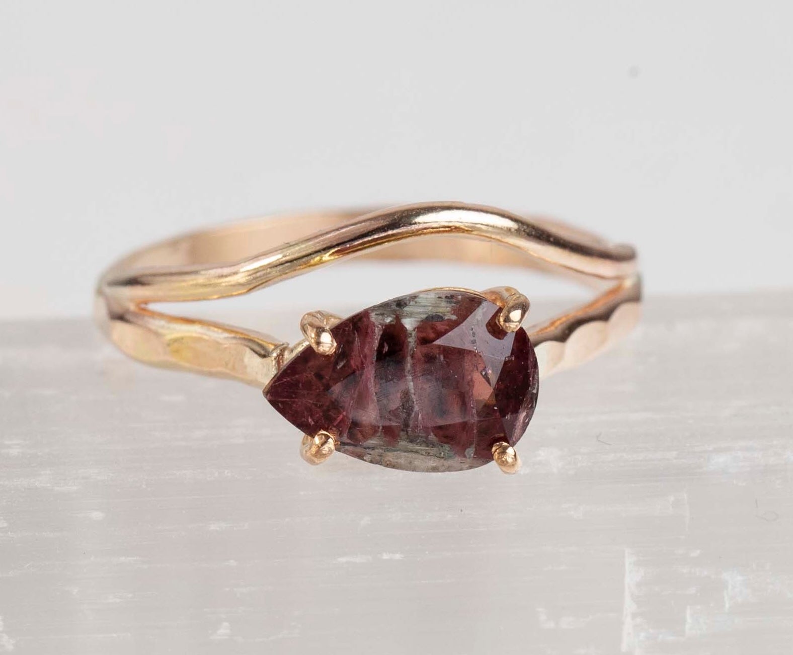 Zebra Tourmaline Hammered Half-round with Curve Ring